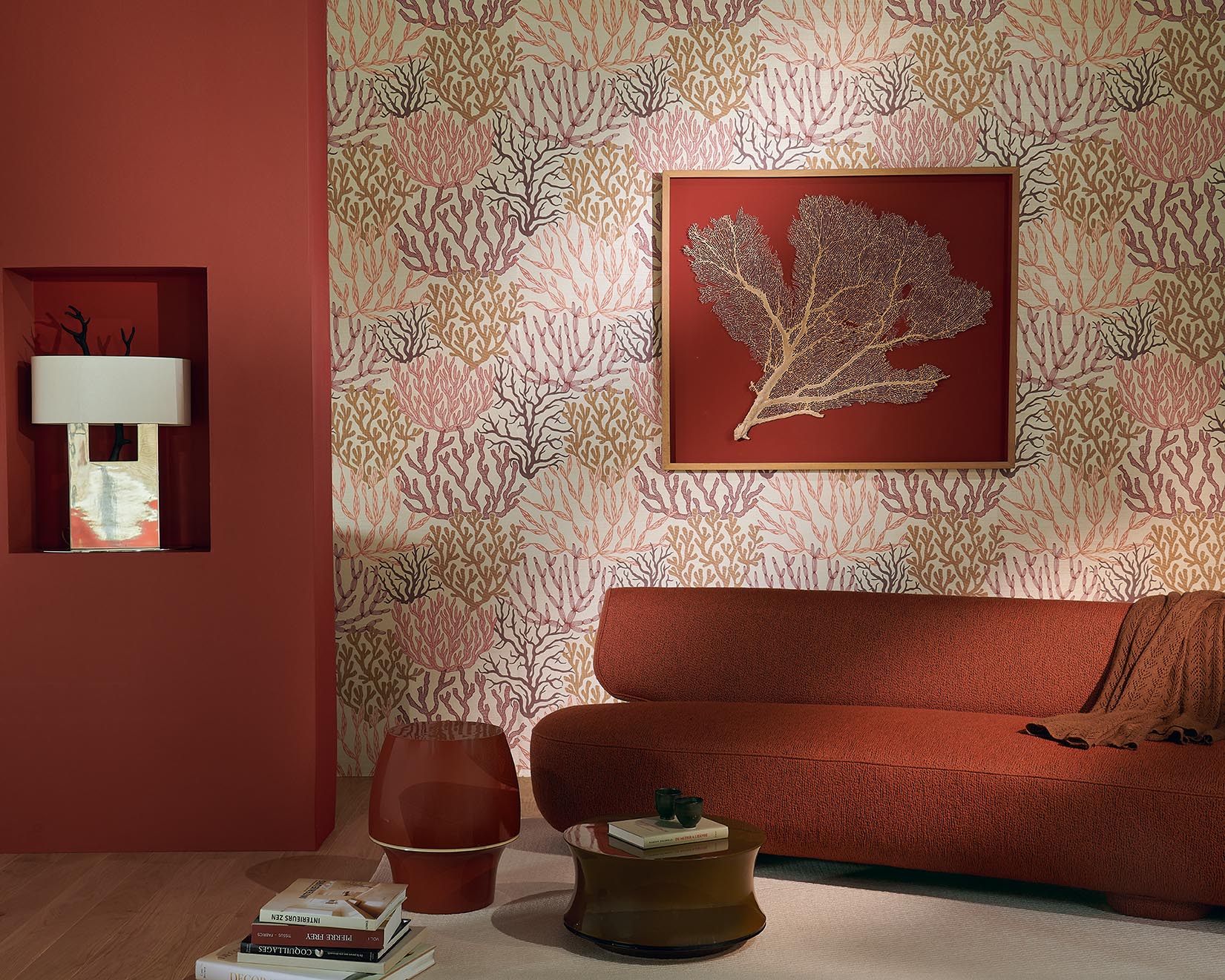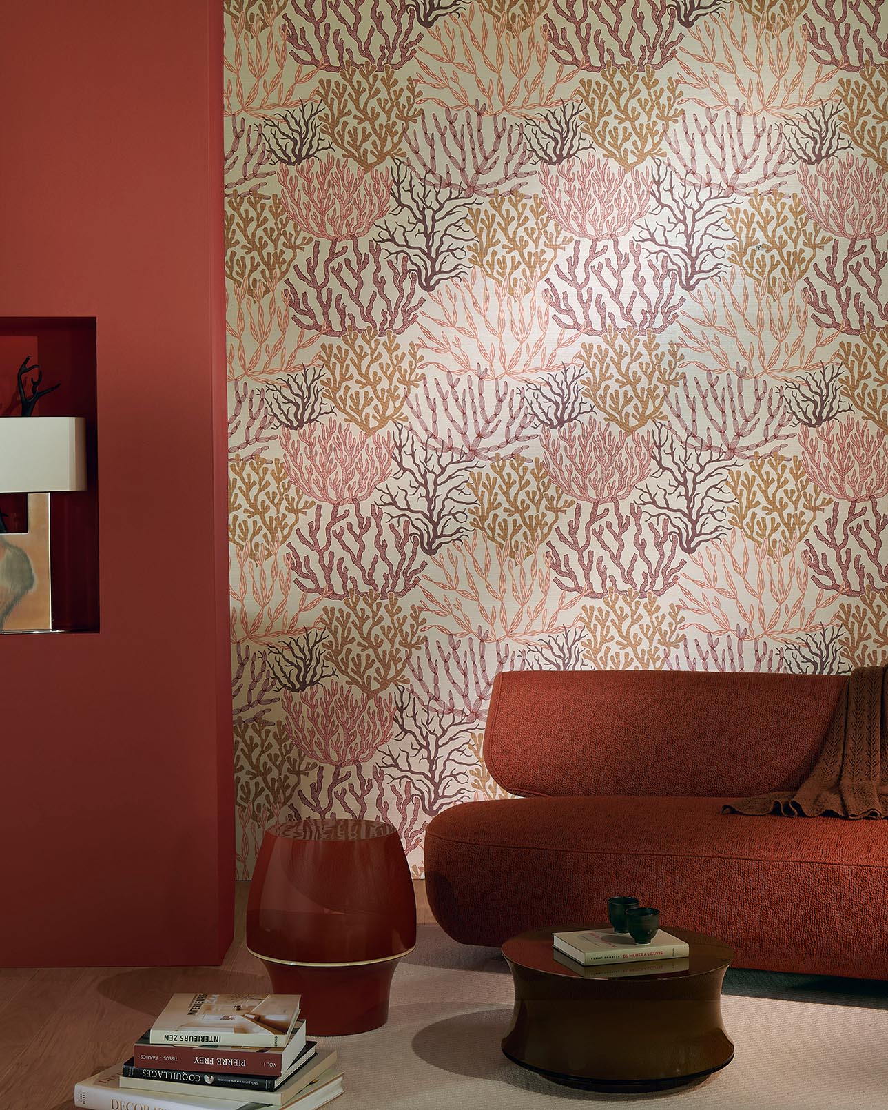 Multitude de coraux dont le traitement graphique divers apporte un vrai parti pris décoratif. Imprimé sur paille, le motif d'ACROPORA évoque avec beaucoup de douceur, un fond marin.