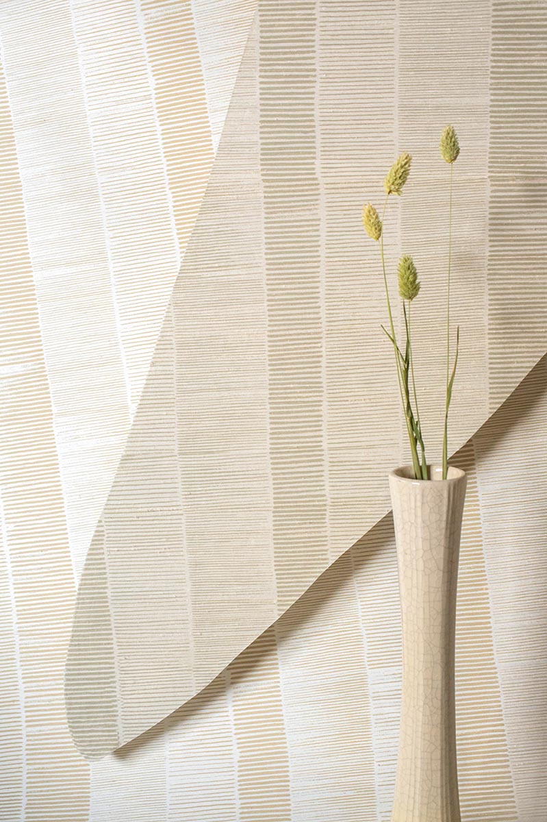 Jeu de rayures irrégulières à l'inspiration végétale imprimé sur soie contrecollée sur intissé (soie SHIVA BP334).