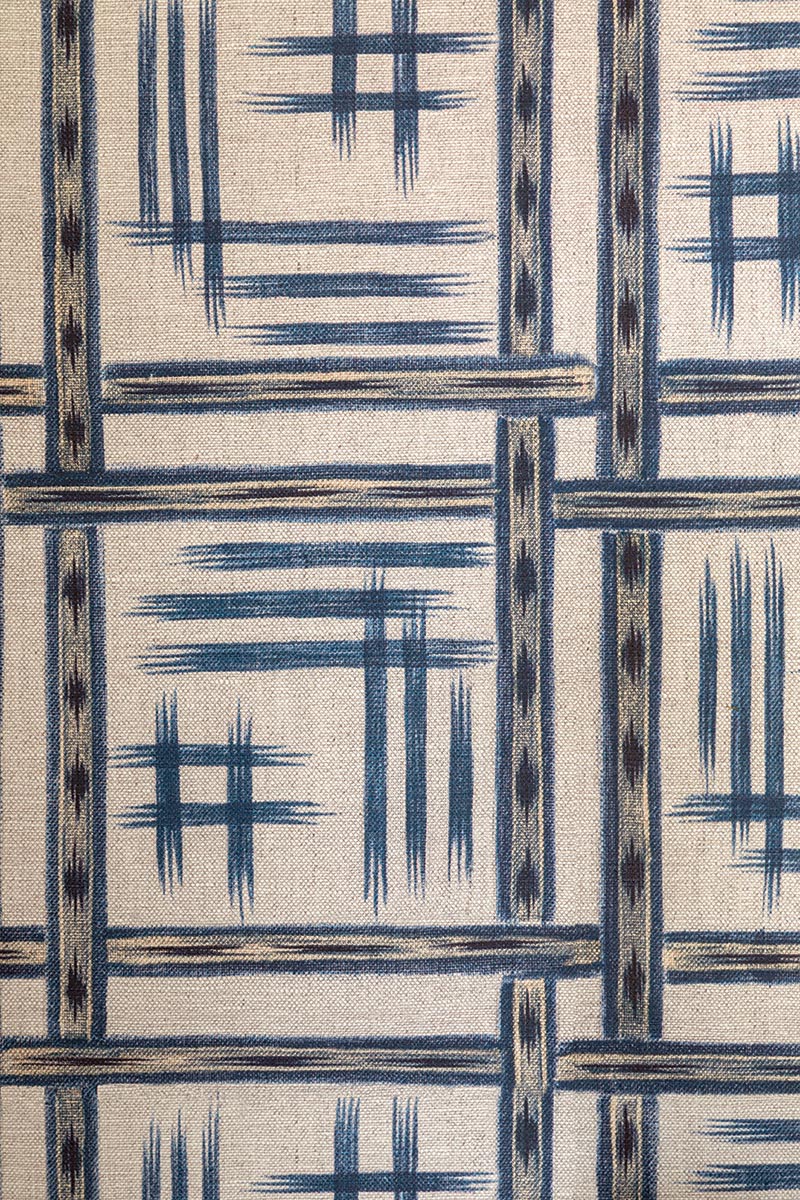 Signifiant « conte merveilleux », le nom AKIMASA a été choisi pour cet ikat peint main à l'origine. Il est ici imprimé sur vinyle gaufré, mettant en valeur sa structure textile.