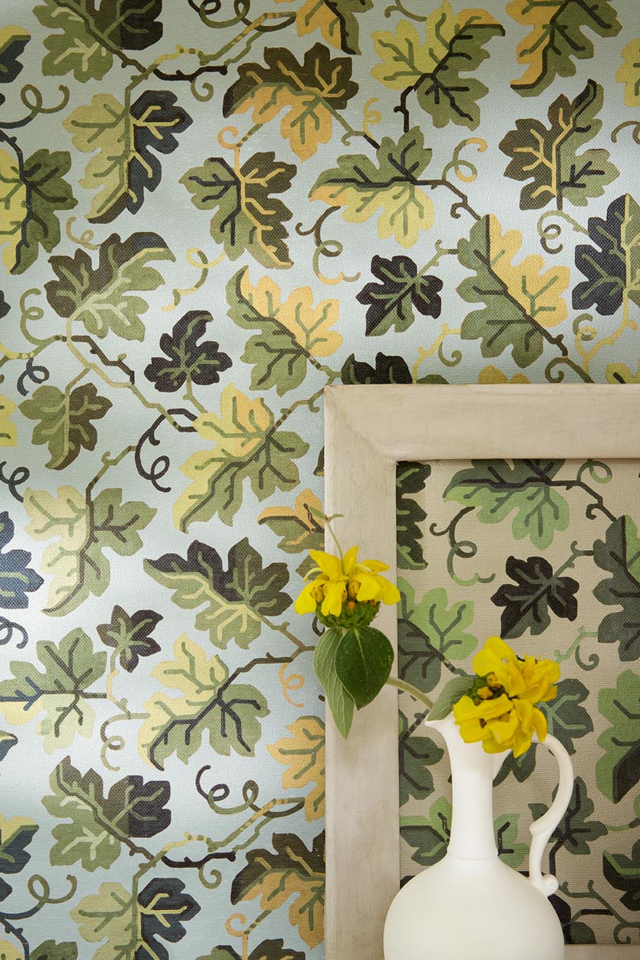 Motif de lierres stylisés qui habillent le mur de végétation. Ce dessin, intemporel et singulier à la fois, est repris d’une mise en carte des années 1950, conservée dans le fonds patrimonial de la Maison. HEDERA est imprimé sur un support textile travaillé et contrecollé sur intissé.