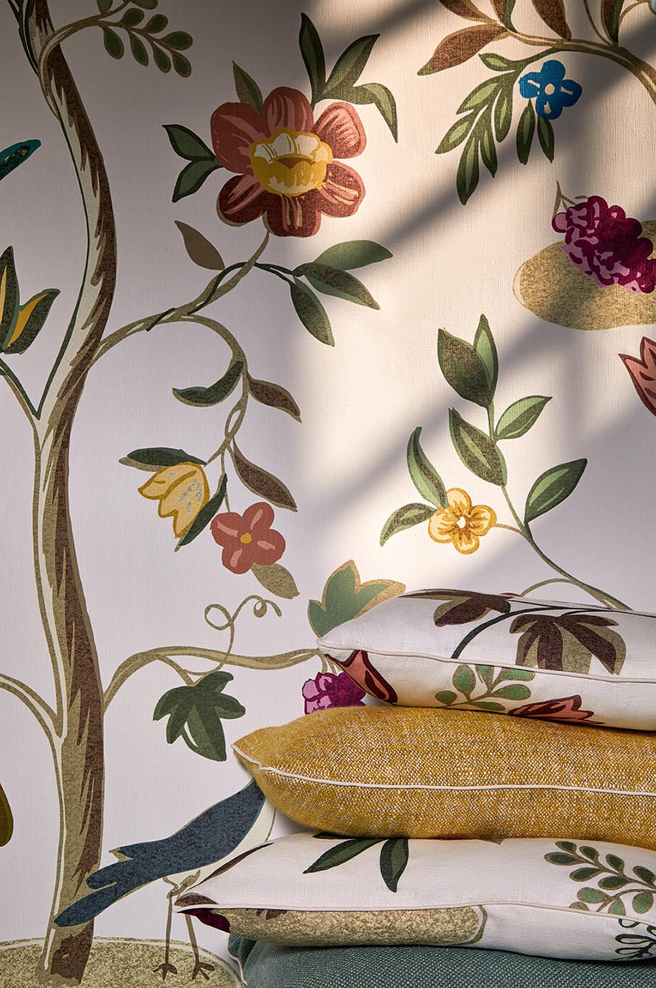 Un arbre offrant une multitude de fruits variés, sur lequel viennent se poser des oiseaux majestueux, au plumage coloré… Aucun doute : c’est l’arbre magique ! Imprimé sur un vinyle type II lui conférant une haute résistance, ce papier peint trouvera sa place dans un intérieur ouvert sur l’extérieur.