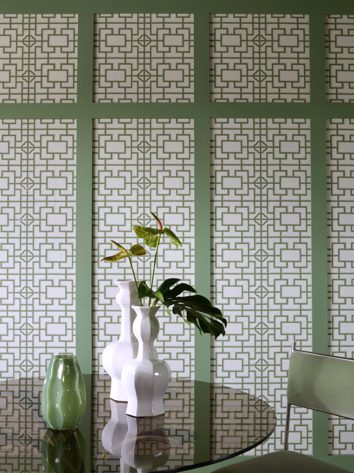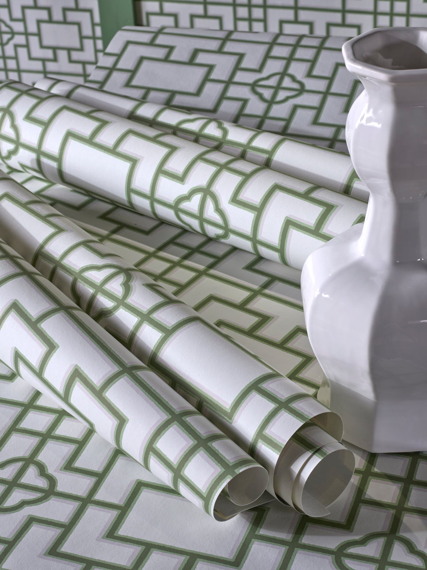 Évocation libre des parterres à la française, cette impression traditionnelle au cylindre joue sur les contrastes entre encres mates et satinées, dans un esprit graphique et moderne.