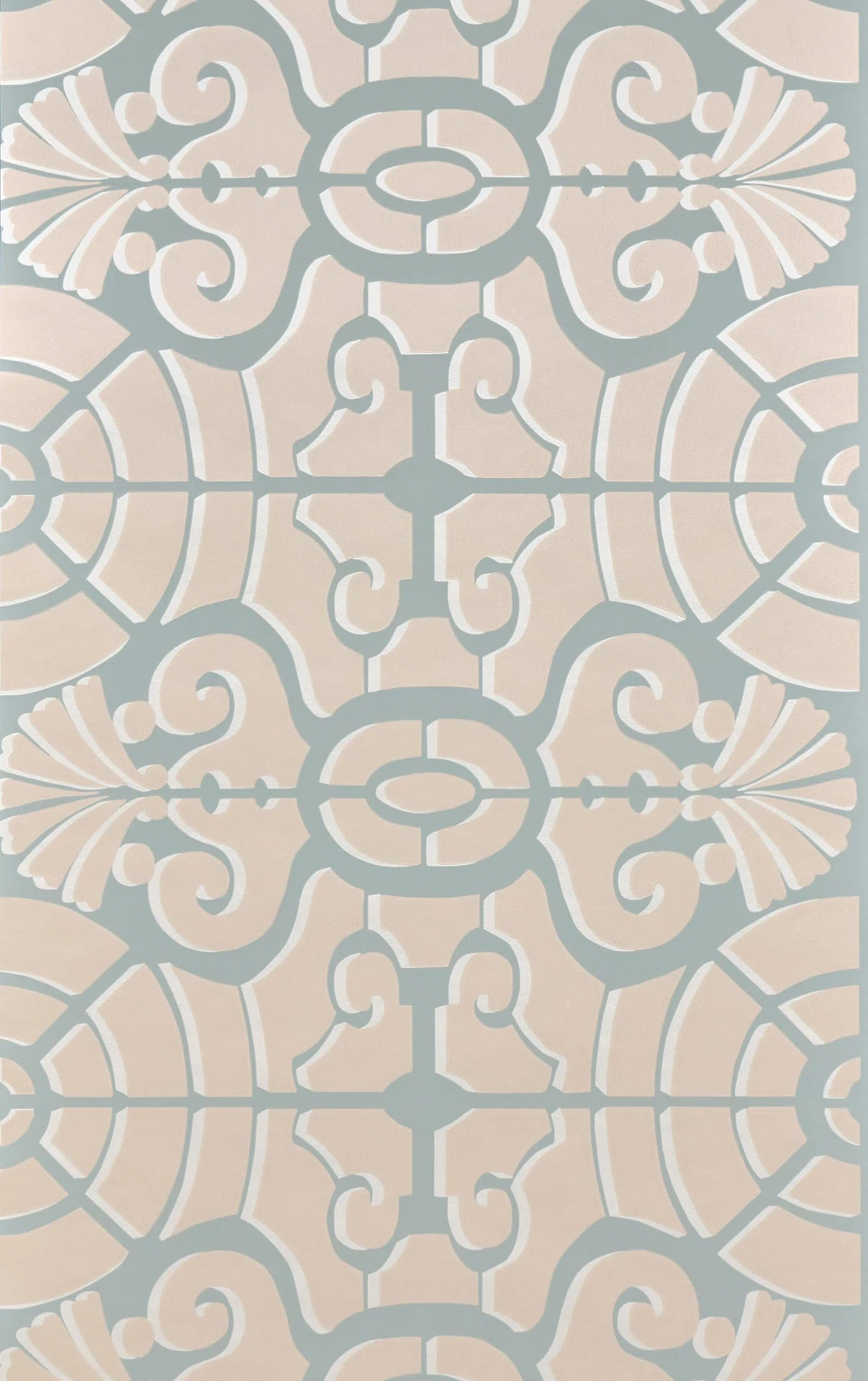 Le motif L’Allée du Roi rappelle la géométrie des jardins à la française, imprimé de manière traditionnelle au cylindre.