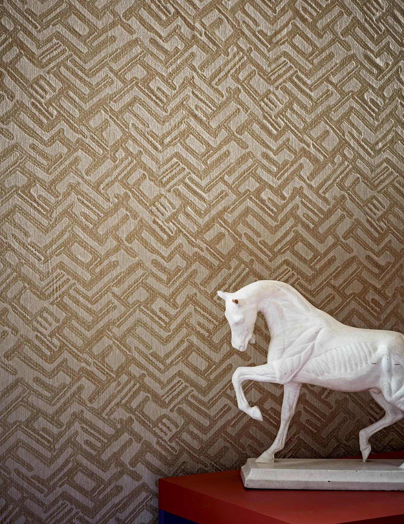Les artistes orientaux ont porté au firmament un art basé sur les formes géométriques. KADJAR en est un parfait exemple. Révélé par un gaufrage d'un support de fils posés, ce subtil dessin évoque la richesse de ce champ iconographique qui s'exprime dans tous les arts décoratifs.
