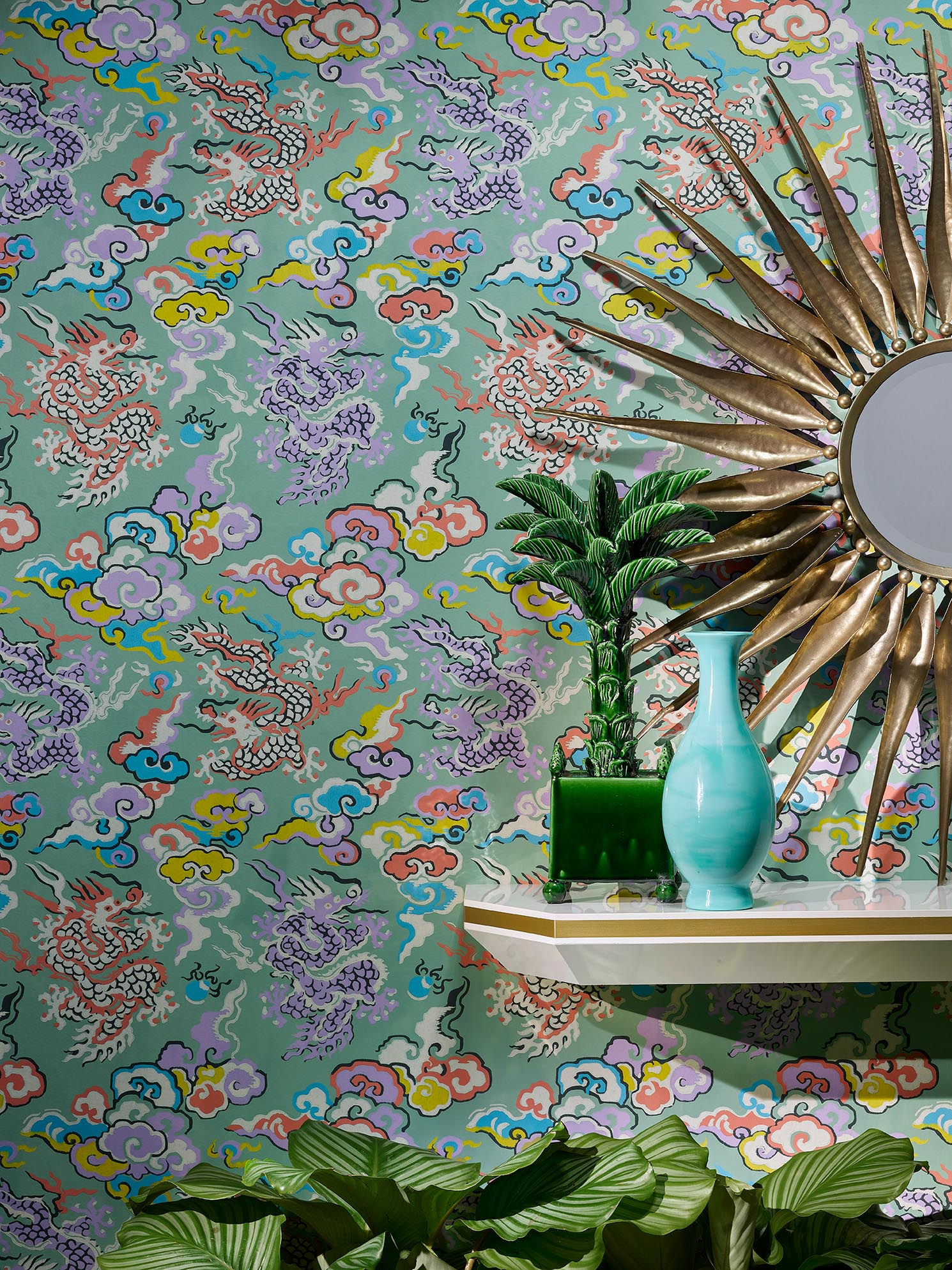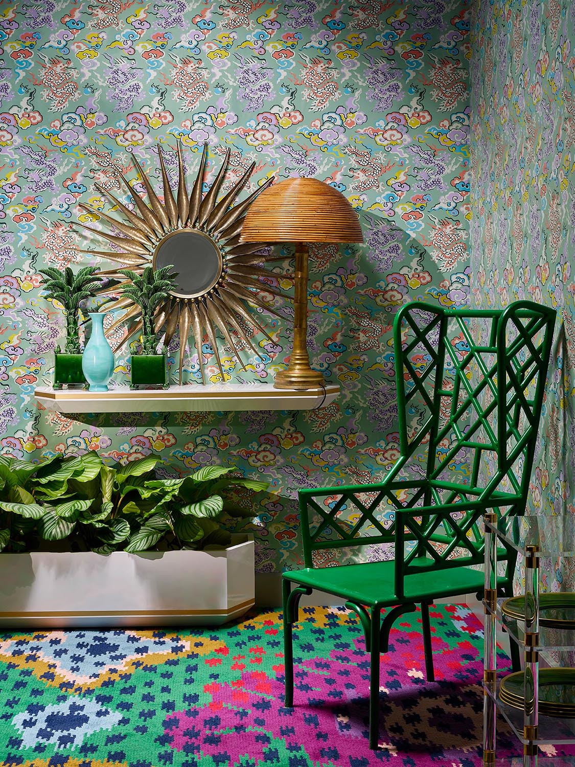 On y retrouve le goût pour la célébration, l’amour des jardins et un subtil classicisme recoloré dans des tonalités vives pour une décoration sophistiquée et élégante.