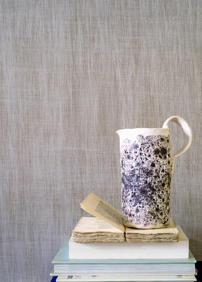 NIMES est un uni a l'aspect fibreux et aux reflets métalliques. Une surimpression digitale sur un fond métallique or ou argent, contrecollé sur intissé, rend les coloris de la gamme changeants et profonds en fonction de la lumière.