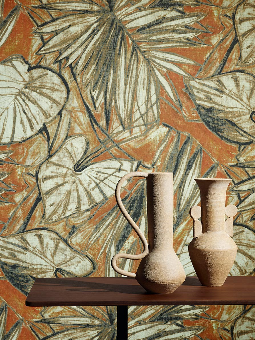 Illustration au trait libre et ample qui évoque avec modernité et caractère un univers végétal aquatique. Impression en grande largeur sur un intissé mat. Coordonné au tissu F3548 WATER LILY.