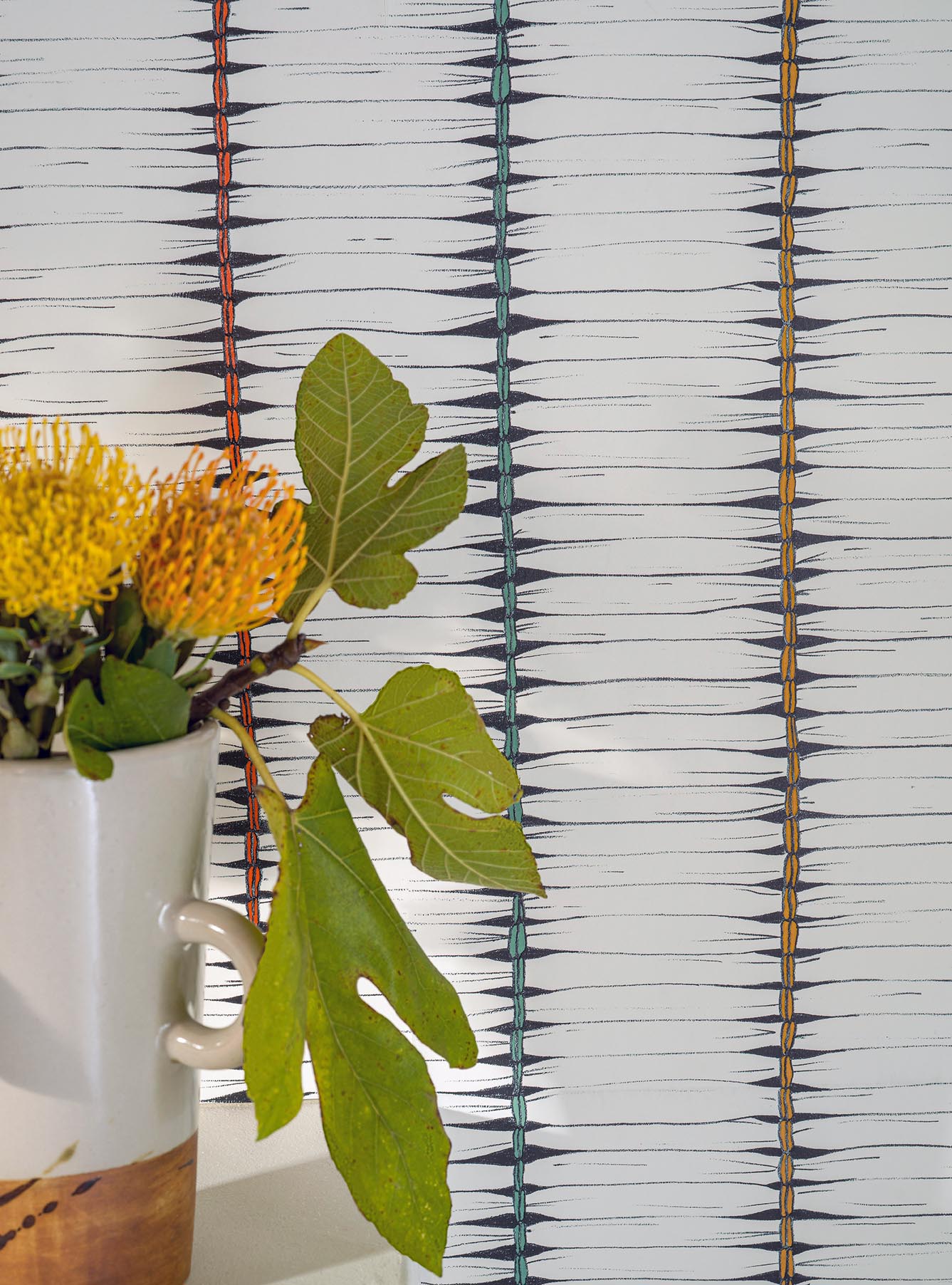 Motif contemporain s’inspirant de l’art ancestral du tissage des feuilles de palmiers dont l’impression 3D en laque brillante sublime de manière inédite le volume et les jeux de lumière créés par le dessin.