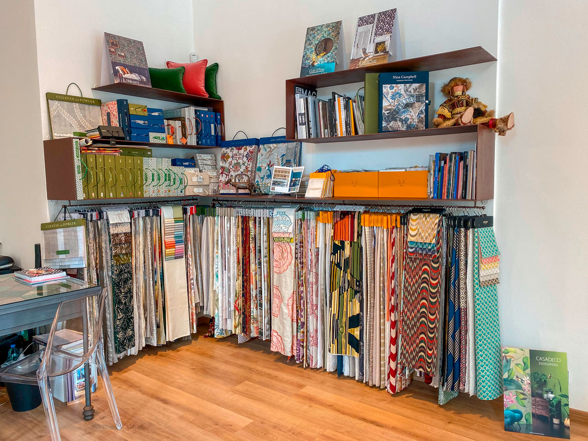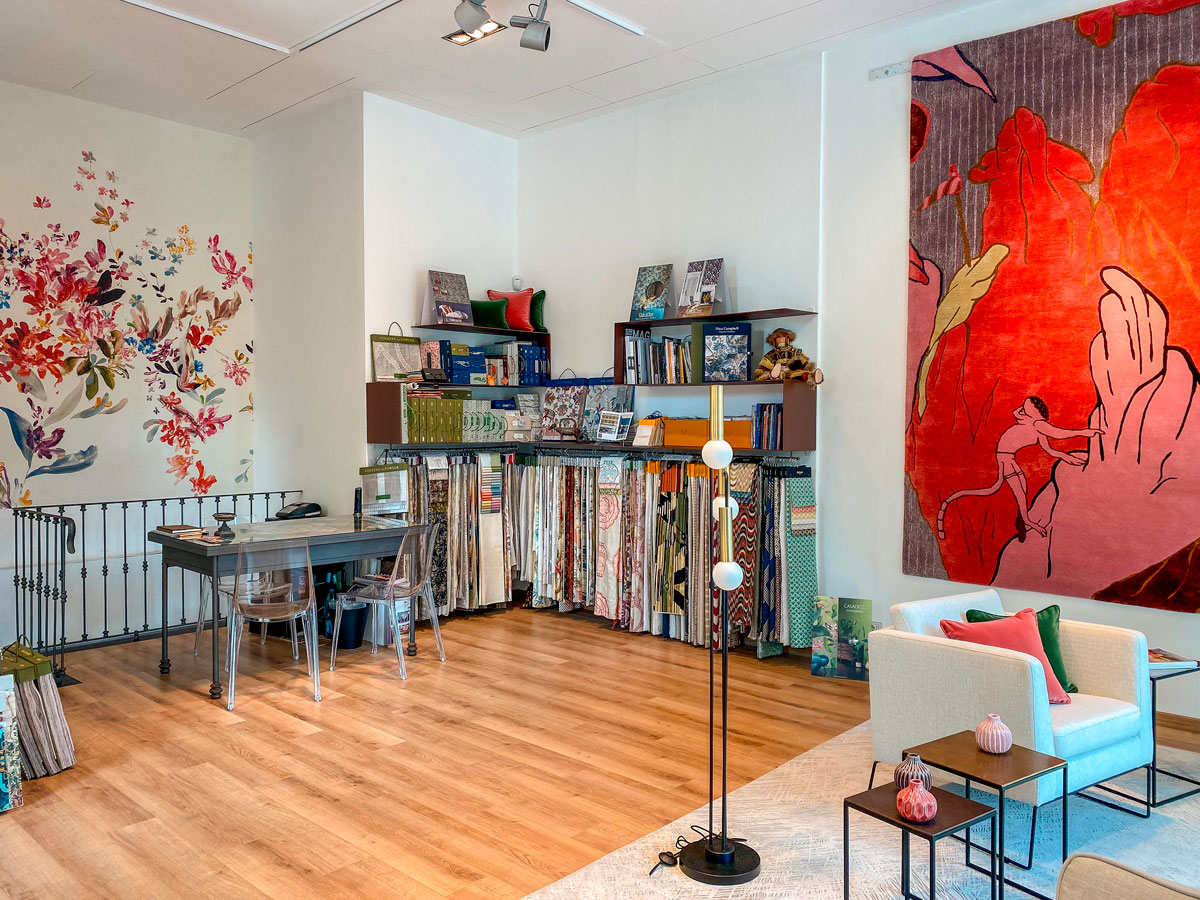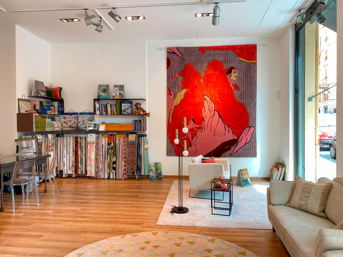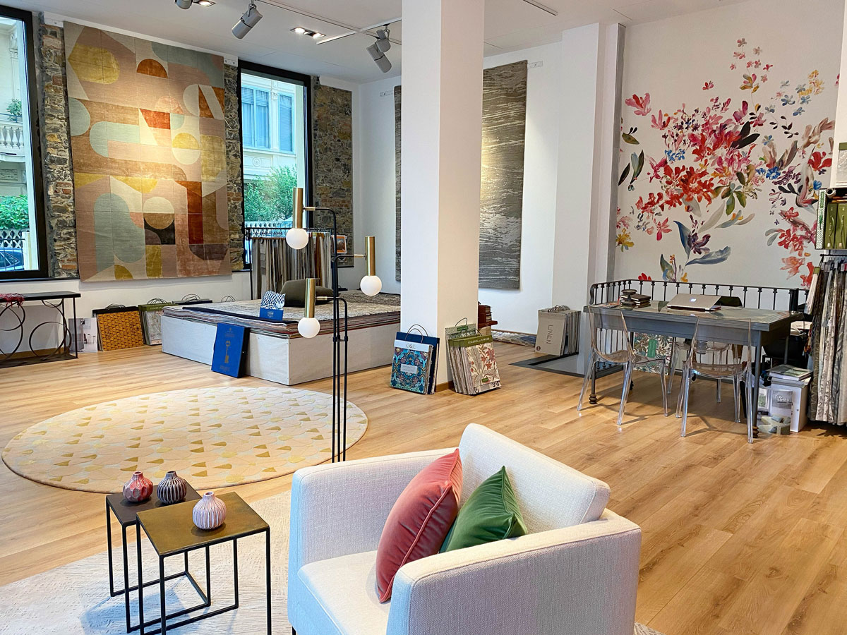 In show-room potrete trovare una vasta collezione di tappeti moderni, tessuti e tendaggi, carte da parati e arredamento.