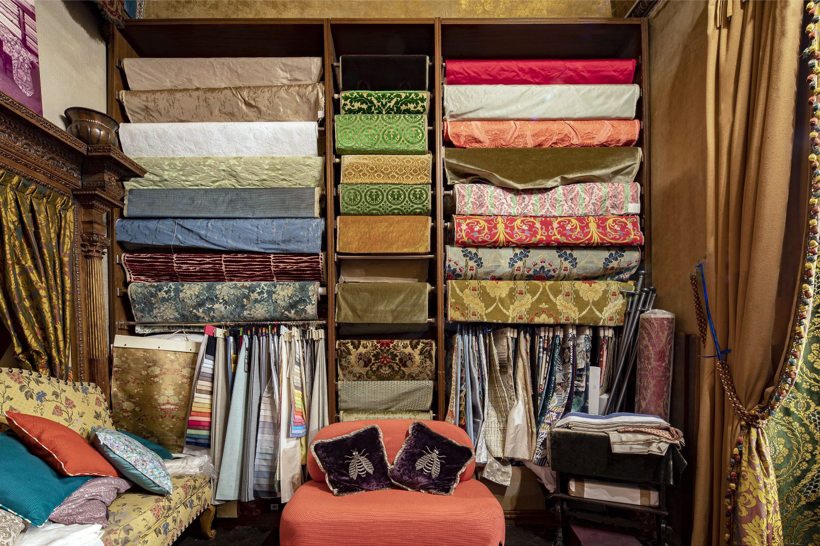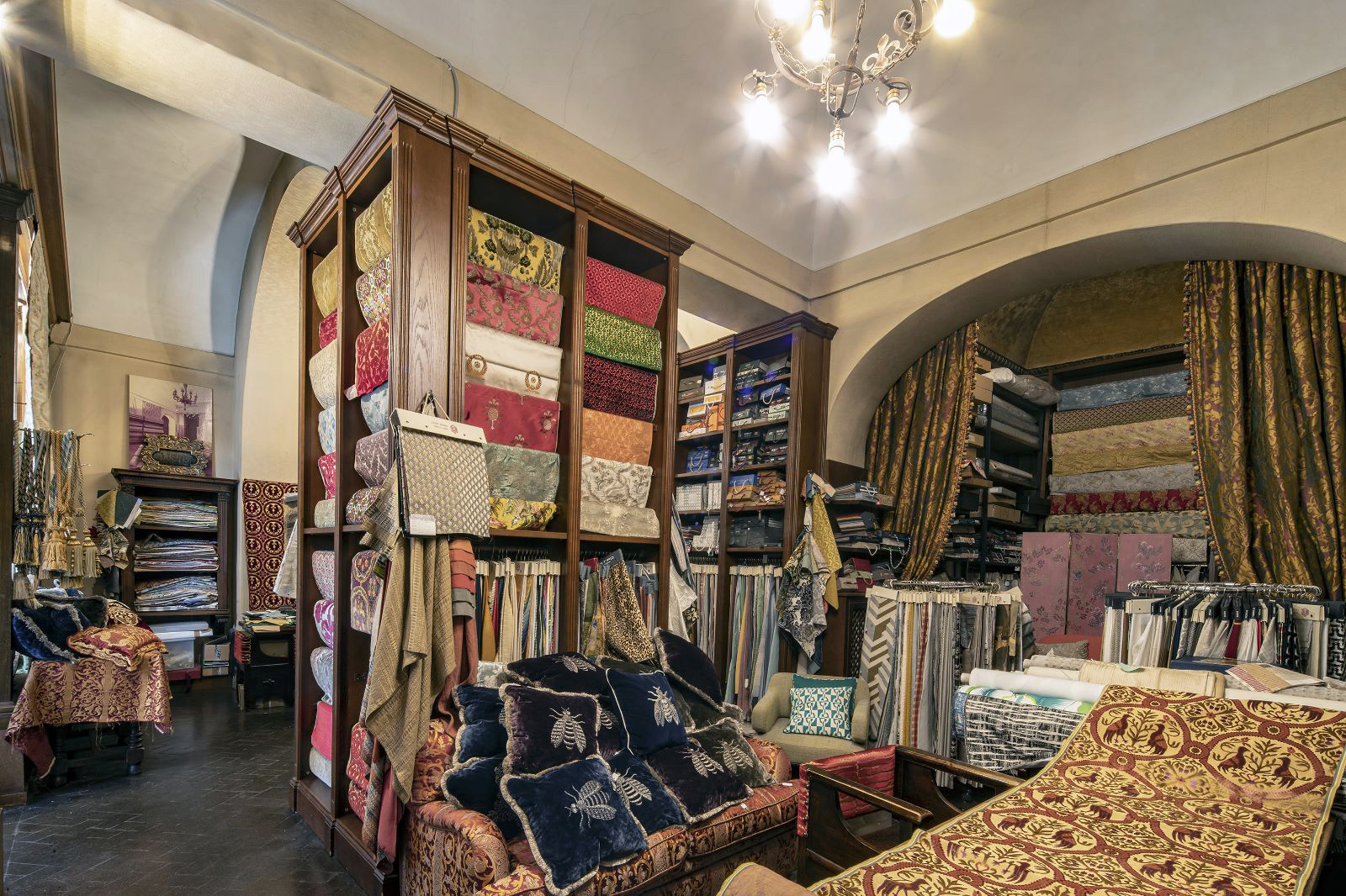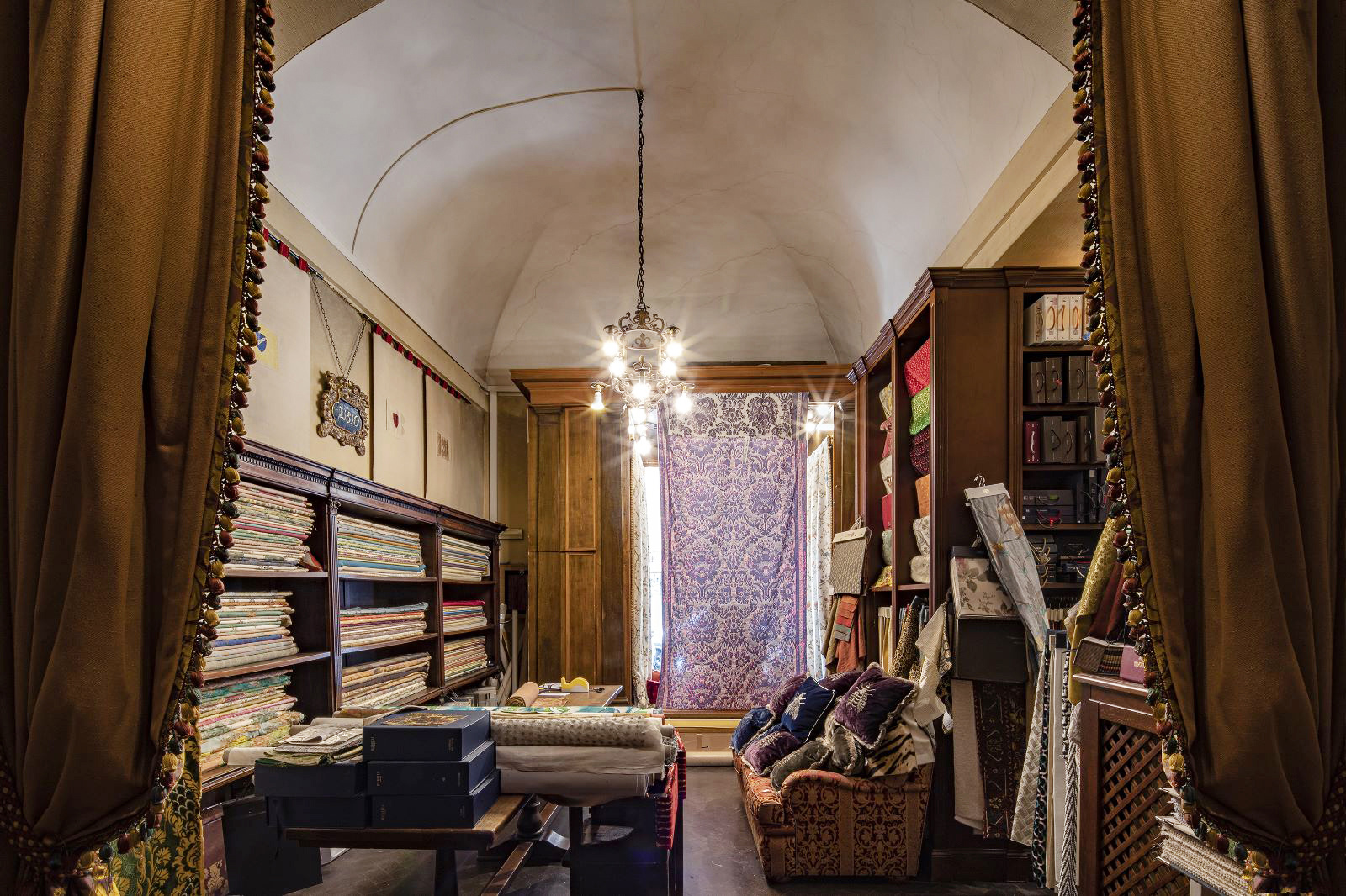 Our collections of fabrics, coming from the most prestigious Italian and non-Italian weaving mills, range from the most important Velvets and Brocades, still handmade on antique looms, to the classic Lamppassi and Damasks, with which we furnish any type of environment.
