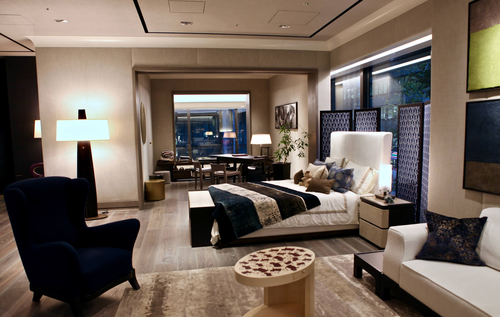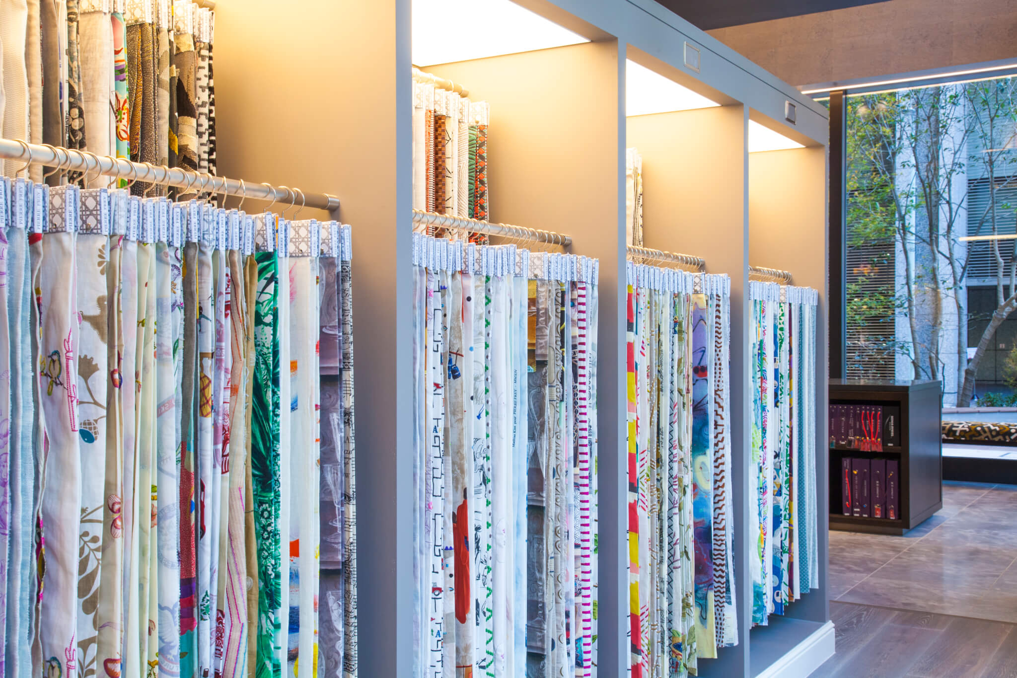 By seeing and touching actually, you can feel the great genuine texture of all items --- our original wallpapers made with the traditional materials and by the traditional craftsmanship and imported wallpapers, fabrics, moldings, furniture and rugs of over 43 brands coming from all over the world.