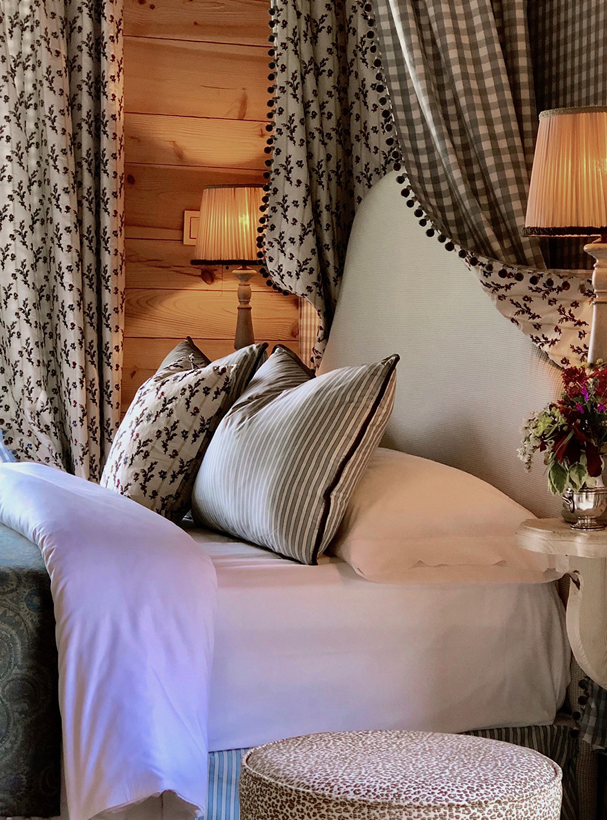 Ce lieu atypique aux portes des Pyrénées a été pensé par la famille Rincón-Ribera, propriétaires de ce lieu à l’esprit « chalet tyrolien » où l’on aime se retrouver. C’est dans le pavillon attenant à l’hôtel, construit en bois et pierres sculptées par le temps que la Maison Pierre Frey a mis à disposition ses étoffes d’exception avec l’utilisation des références GRAND CORAIL et EGLANTINE chez Braquenié qui habillent les murs et les dessus de lit des suites dans une ambiance authentique.