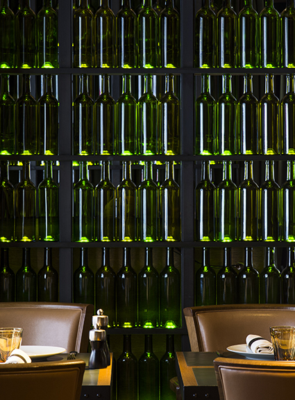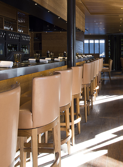Sélectionnés pour son expertise et son savoir-faire, la réalisation du mobilier sur-mesure de cette adresse d’exception a été confiée aux ateliers de fabrication de meubles de la Maison Pierre Frey. Tabourets pivotants, fauteuils et banquettes aux tonalités naturelles et végétales font échos aux codes de l’œnologie appelant à l’éveil des sens pour des instants de dégustations privilégiés entre châteaux, coteaux et vallées.