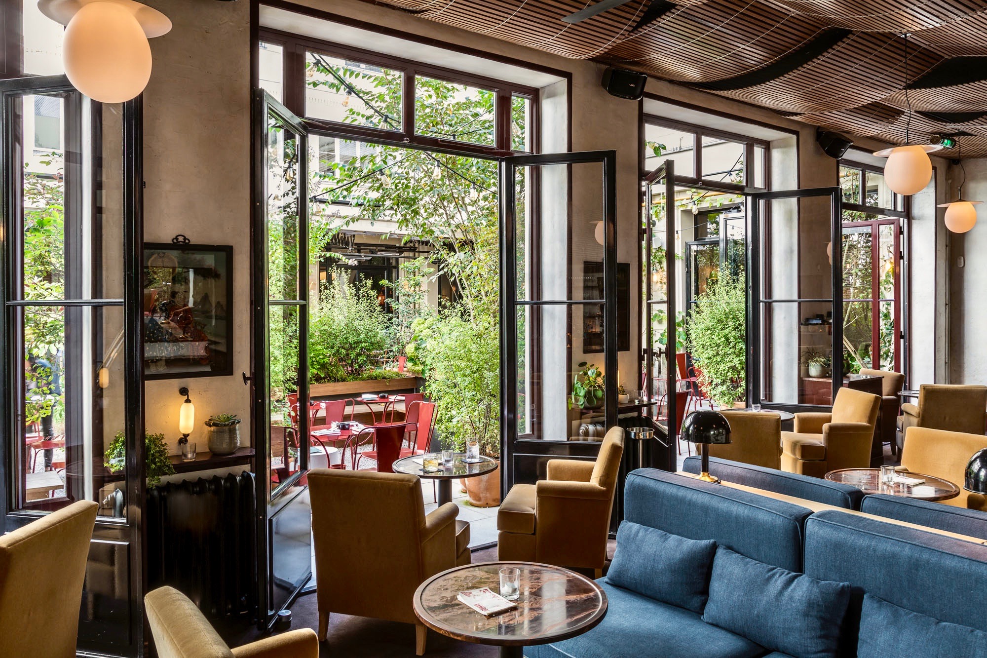 La décoration de cet immense lieu de vie, réalisée par l’Agence Clémence et Clément donne à la salle une atmosphère feutrée rappelant les hauts-lieux de la prohibition. L’utilisation de tissus aux couleurs chaudes et au tomber naturel comme les lins CRAFT et CHEYENNE chez Pierre Frey associés à la douceur du velours MARIN de Boussac renforcent l’esprit confortable des lieux. Sélectionnée pour son expertise sur-mesure, La Maison Pierre Frey met également à disposition ses collections de mobilier pour ce restaurant à l’exotisme assumé.