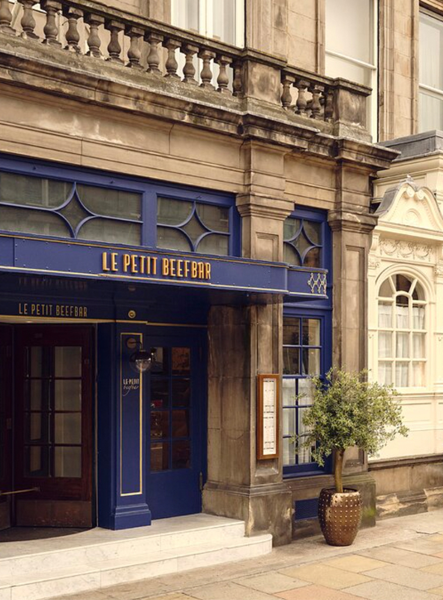 Ancré au sein de l'InterContinental à Edimbourg, le restaurant le Petit Beefbar dirigé par Riccardo Giraudi, chef émérite réputé pour ses plats raffinés, propose ici un véritable voyage culinaire à travers les saveurs du monde. La salle de réception du restaurant, imaginée par le studio d’architecture 3Stories fait la part belle à l'élégance et au confort avec sa gamme de couleurs profondes et chaudes dans un esprit résolument Art déco.
