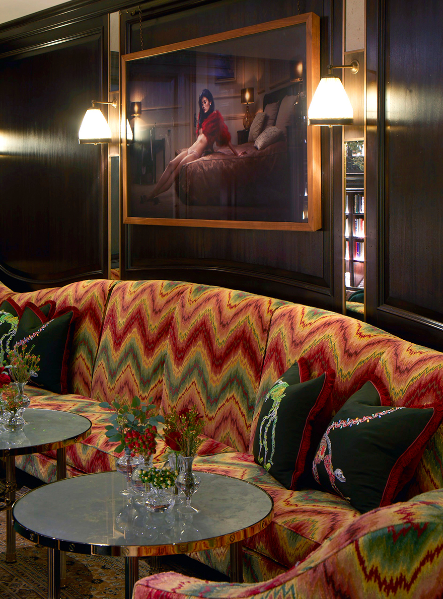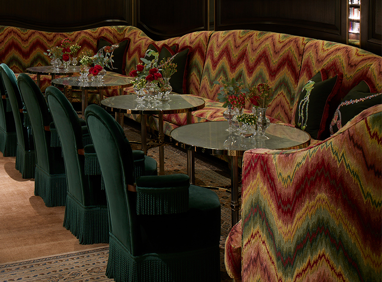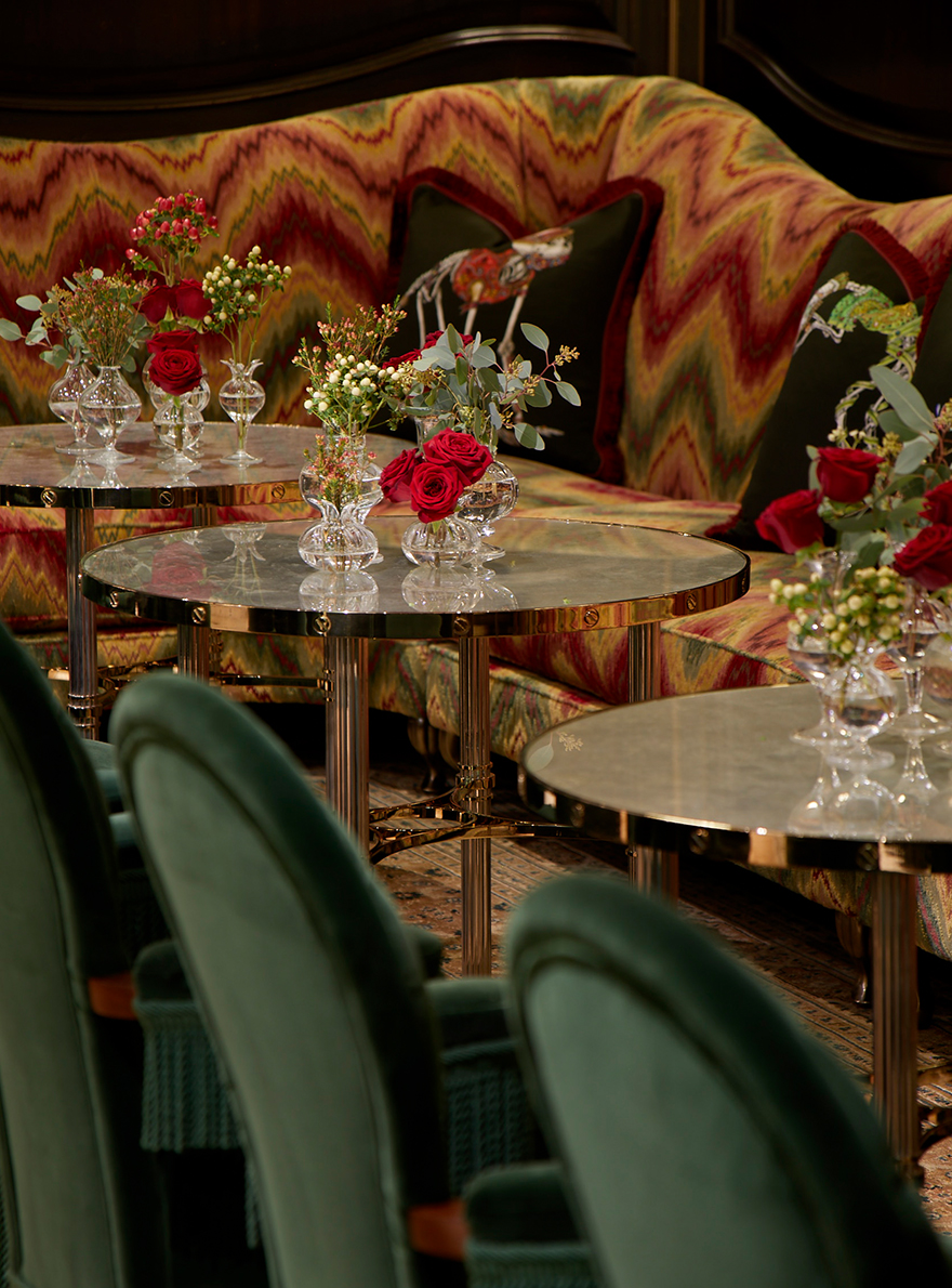 Avec son ambiance directement inspirée des speakeasy londoniens, le bar de cette villa privée conçu par le cabinet d’architecture Spinocchia Freund met à l’honneur le magnifique velours ciselé BUDAPEST chez Fadini Borghi dont le motif point de Hongrie, caractéristique du XVIIe siècle, renforce l’ambiance feutrée et chaleureuse de cet espace d’exception.