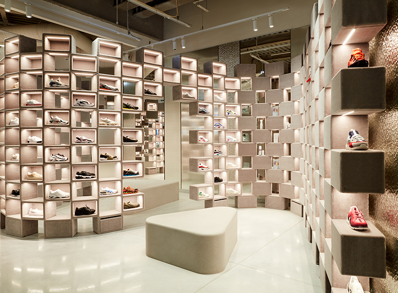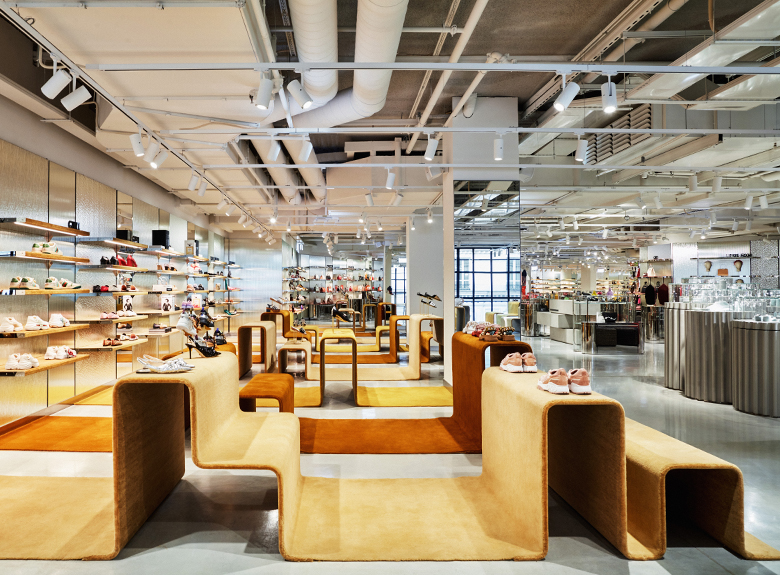 L’incontournable grand magasin parisien a fait appel à l’agence BIG et à l’expertise du département tapis sur mesure Pierre Frey pour insuffler un vent de luxe et d’audace à sa décoration. Cabines d’essayages tapissées de moquette aux teintes acidulées sur les murs et le sol, présentoirs à chaussures aux formes ludiques et aux couleurs douces et chaudes donnent à ce haut lieu du shopping une atmosphère vitaminée à l’originalité assumée.