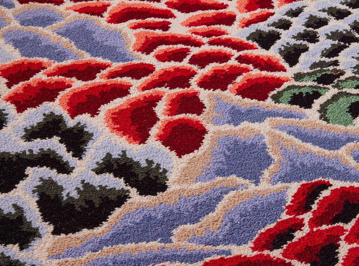 Le grand classique de la Maison Braquenié est retravaillé en moquette onze couleurs. Le motif issu des tertres des arbres de vie indien du XVIIIe siècle, proposé ici en all-over, crée un sol époustouflant.