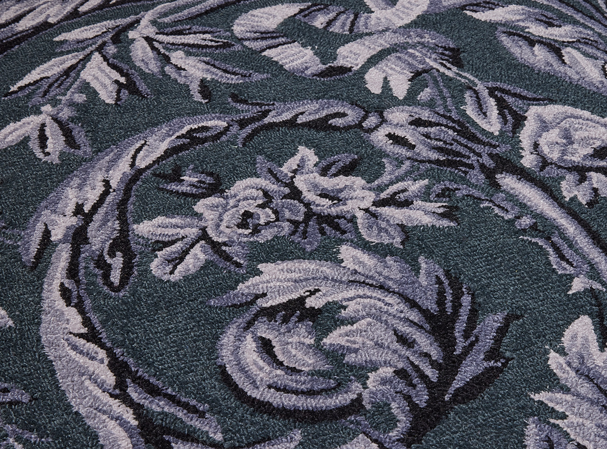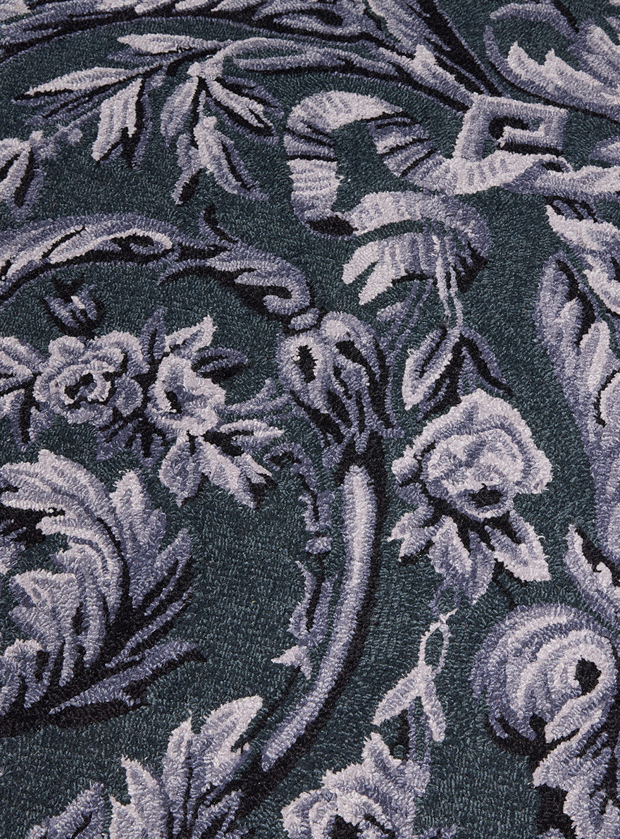 Ce dessin de rinceaux, grand classique de la maison Braquenié de la seconde moitié du XIXe siècle, est recoloré de façon contemporaine. Travaillé en tuft-main, RINCEAUX PRINCIERS TUFT est réalisé en bouclette de laine de Nouvelle-Zélande, avec un rasage aléatoire qui lui apporte originalité et vibration.