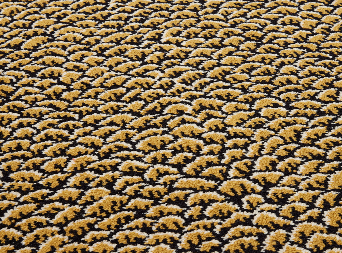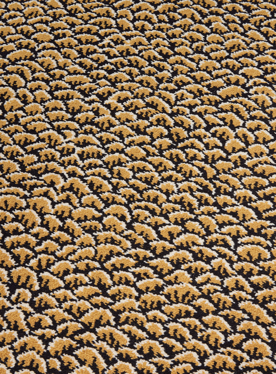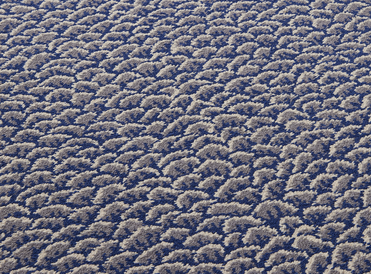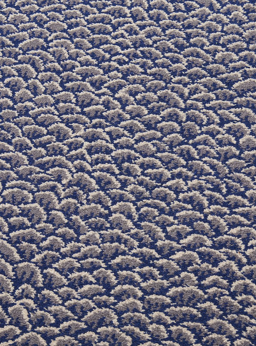 Travaillé en tissage Axminster, ce motif intemporel d'écailles se retrouve aussi bien dans les tertres des palempores indiens du XVIIIe siècle que dans l'art traditionnel japonais.