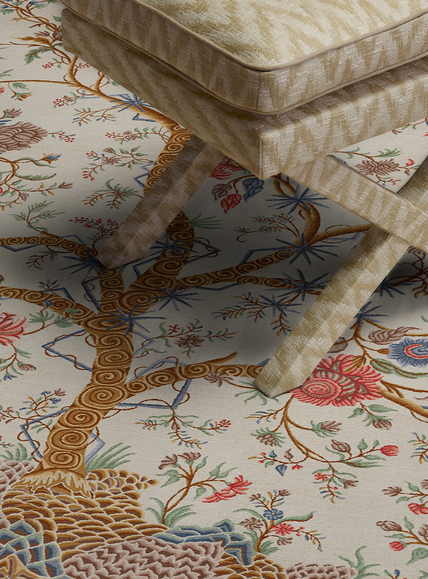 Grand classique de la Maison, LE GRAND GENOIS nous invite à revisiter l'usage des palempores indiens du XVIIIe siècle, initialement destinés aux murs. Entièrement noué à la main de façon traditionnelle au Népal, en velours de laine.