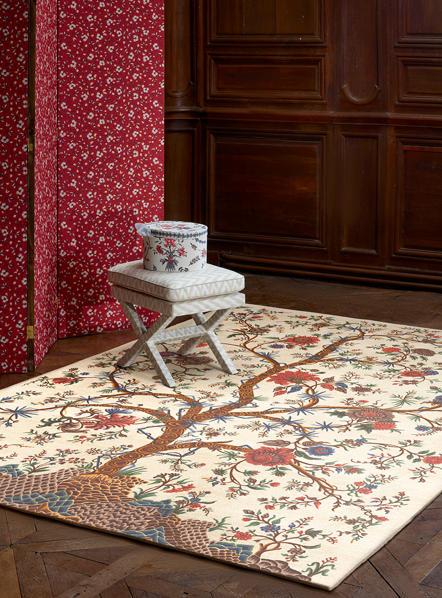 Grand classique de la Maison, LE GRAND GENOIS nous invite à revisiter l'usage des palempores indiens du XVIIIe siècle, initialement destinés aux murs....