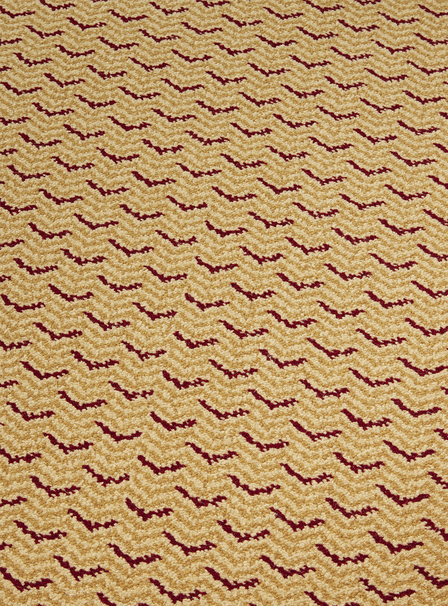 Cette moquette Axminster tissée en 80% laine et 20% polyamide est un charmant petit faux-uni, qui se caractérise par ses formes géométriques subtilement colorées.
