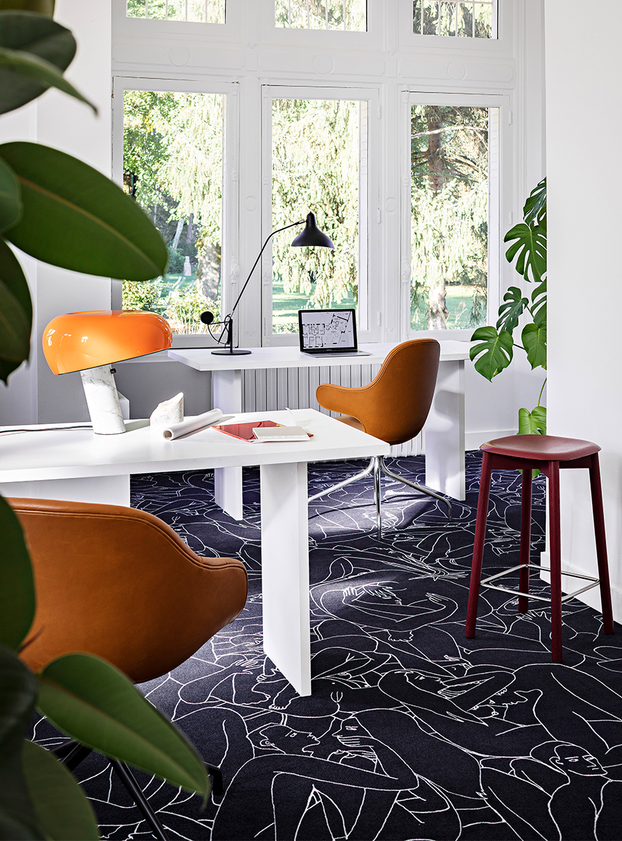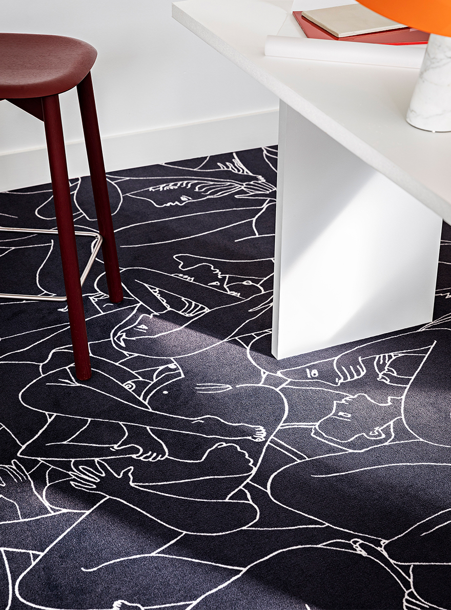 Passionnée par le dessin, l’actrice Louise Bourgoin rencontre l’éditeur de tissus Patrick Frey et lui fait découvrir ses dessins. Particulièrement séduit par la manière de dessiner de Louise Bourgoin, à la plume, quasiment d’un seul trait, s’interdisant de gommer et composant avec ses erreurs, il lui propose de créer une collection pour la Maison Pierre Frey. Imprimée sur un velours coupé, la moquette LE COUPLE se joue d'un effet résolument graphique.