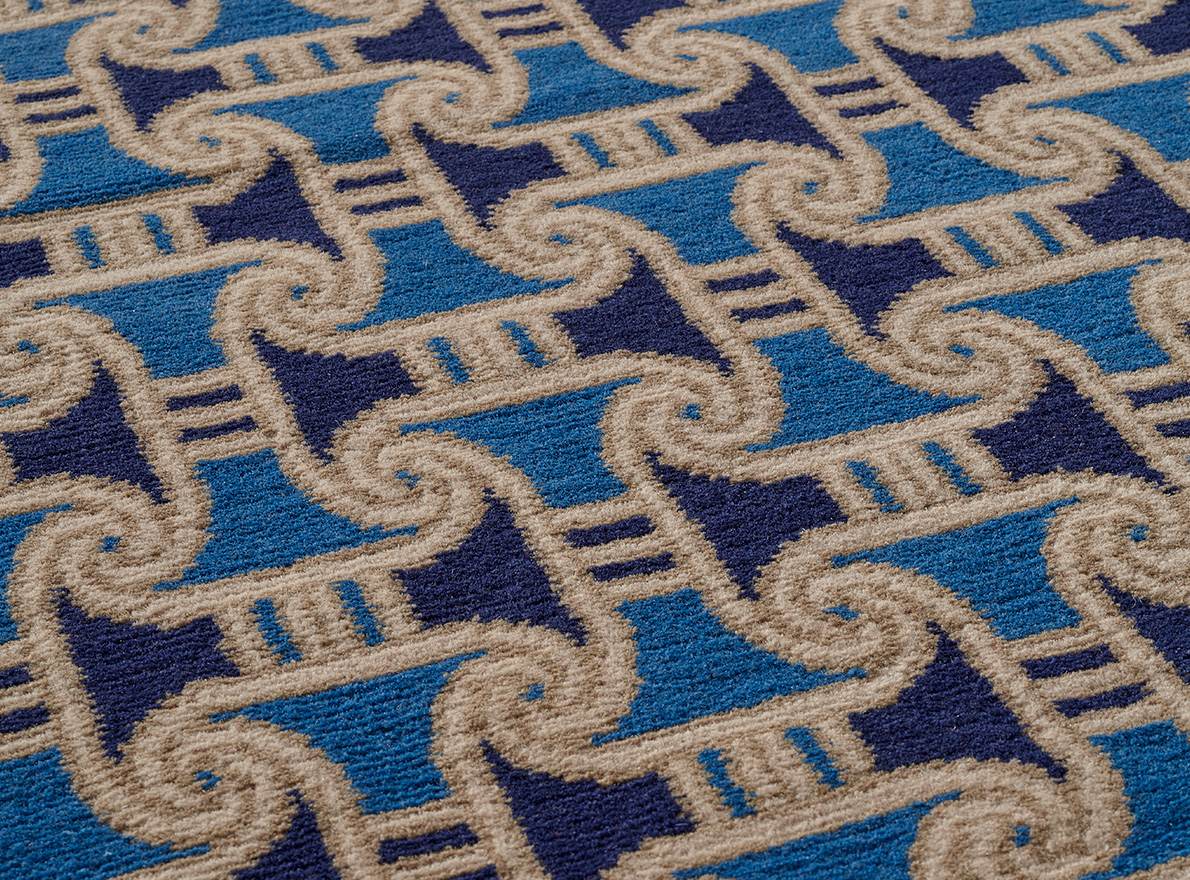 Hommage à la modernité décorative de l'Egypte des Pharaons, le motif SEDJES est directement inspiré par les recueils de l'égyptologue suisse Gustave Jequier. La finesse de ce petit motif répétitif est rendue possible grâce au savoir-faire ancestral du noué-main népalais, toujours réalisé artisanalement à Katmandou.