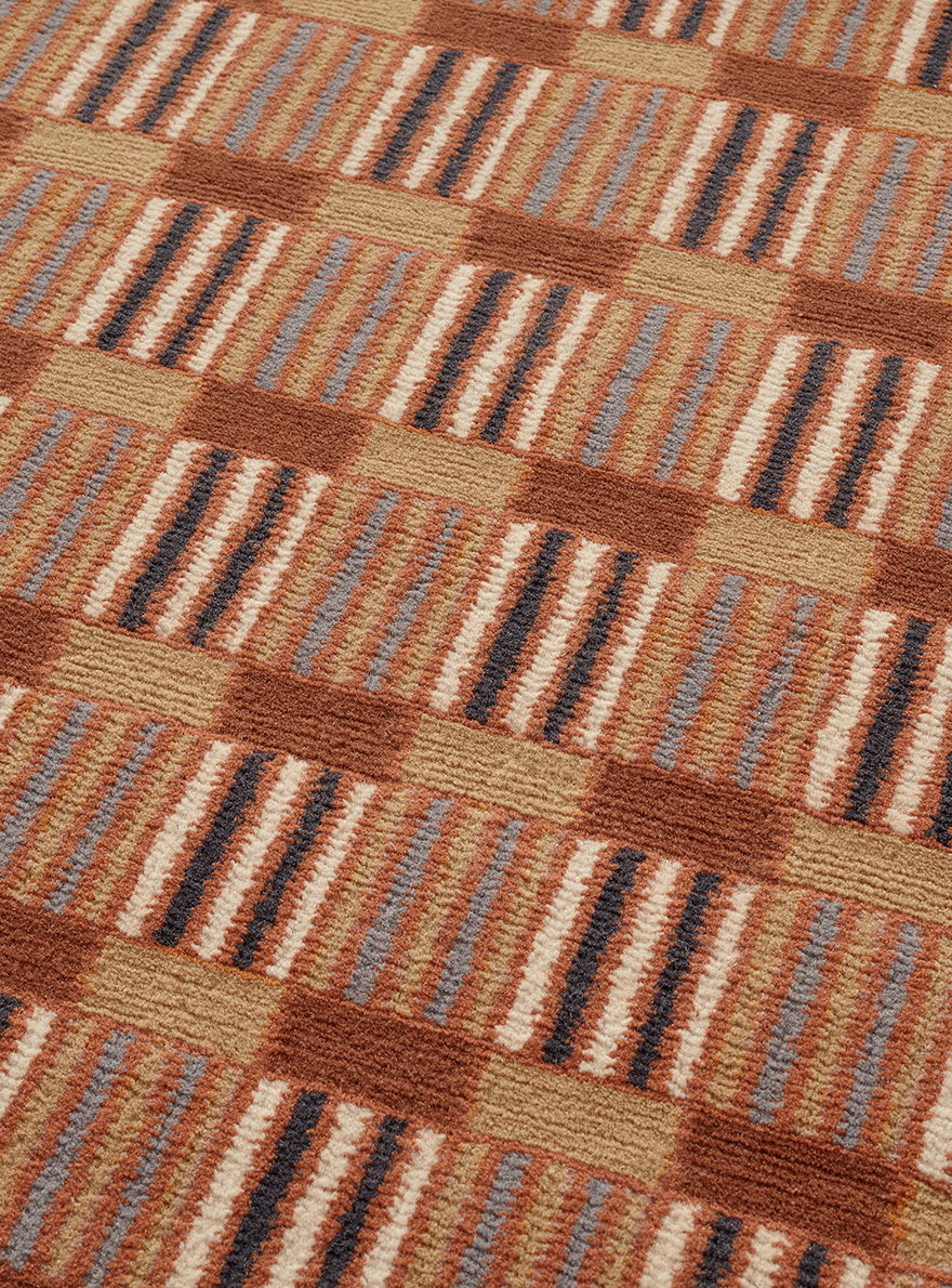 Hommage à la modernité décorative de l'Egypte des Pharaons, le motif NEBKARE est directement inspiré par les recueils de l'égyptologue suisse Gustave Jequier. La finesse de ce petit motif répétitif est rendue possible grâce au savoir-faire ancestral du noué-main népalais, toujours réalisé artisanalement à Katmandou.