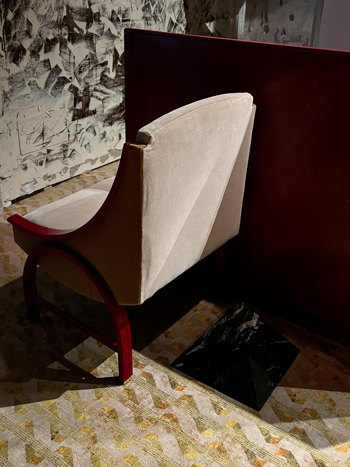 Fondateurs de l’agence italienne de design DimoreStudio, Emiliano Salci et Britt Moran s’inspirent des années 60 pour créer la moquette « Palmador ». Ce motif foisonnant, disponible en 2 couleurs, est imprimé sur une moquette tuftée.
