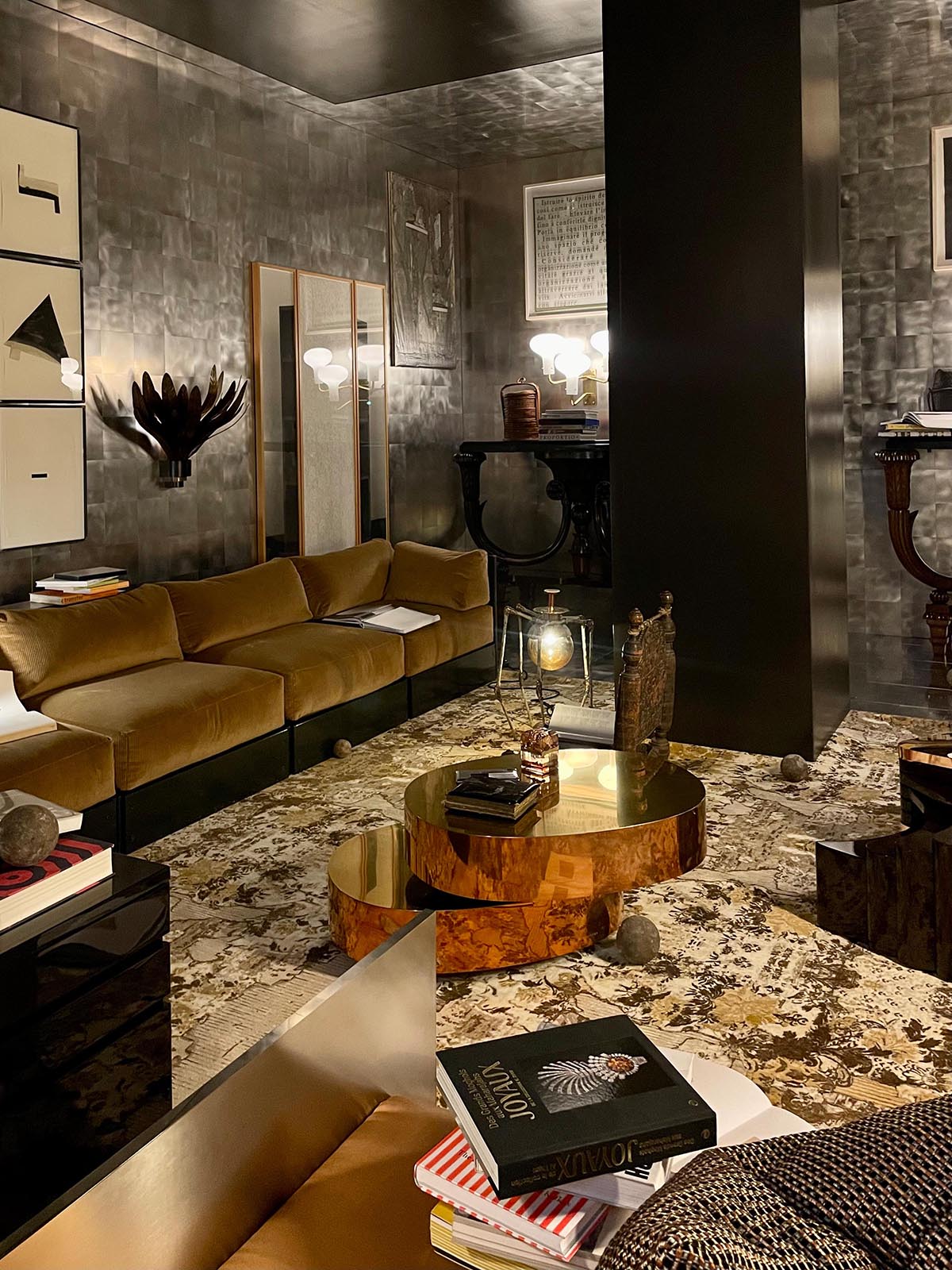 La moquette SPECIAL reprend le design du tissu du même nom, emblématique de Dimore Studio. Le motif s’inspire d’une tapisserie du début du XXème siècle provenant de la collection privée des cofondateurs du studio. L’impression digitale est réalisée sur velours de polyamide, en grande largeur, pour un usage intensif et dans des escaliers.