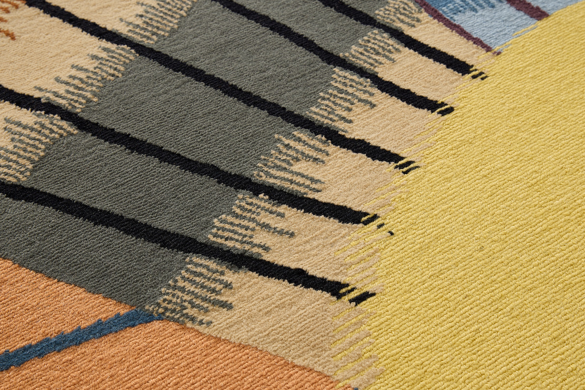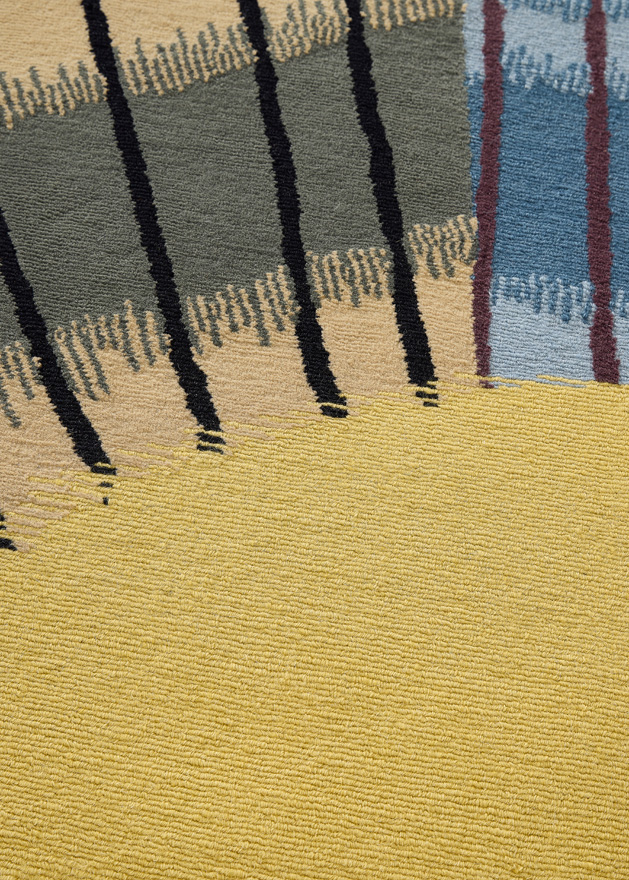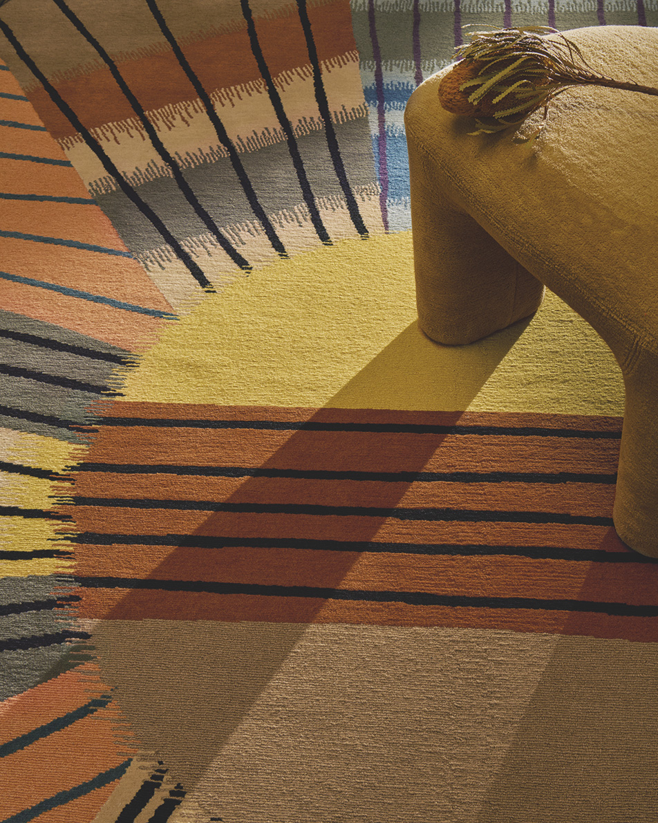 Mélange de lignes graphiques et de dégradés rappelant les tissages Ikat, NUR est un tapis noué-main dans des tons chauds et naturels. Il puise son inspiration à la fois dans les drapés de tissus berbères et l'imagerie seventies du soleil sur les déserts américains. Le mélange de texture coupée et bouclée souligne le caractère artisanal propre au noué-main népalais.