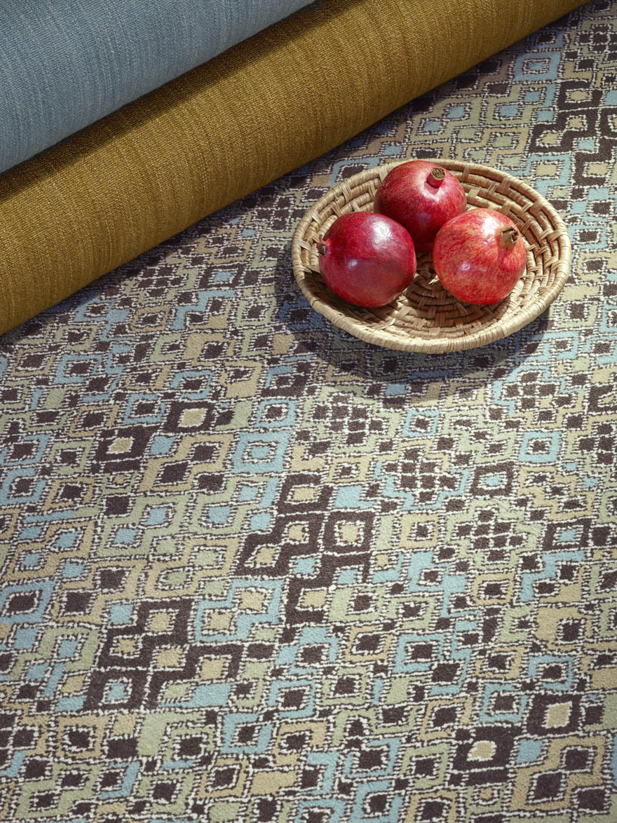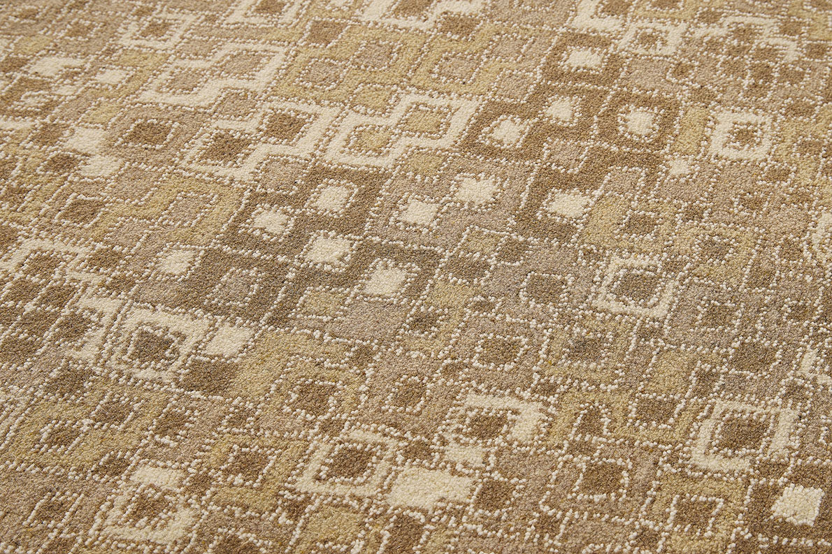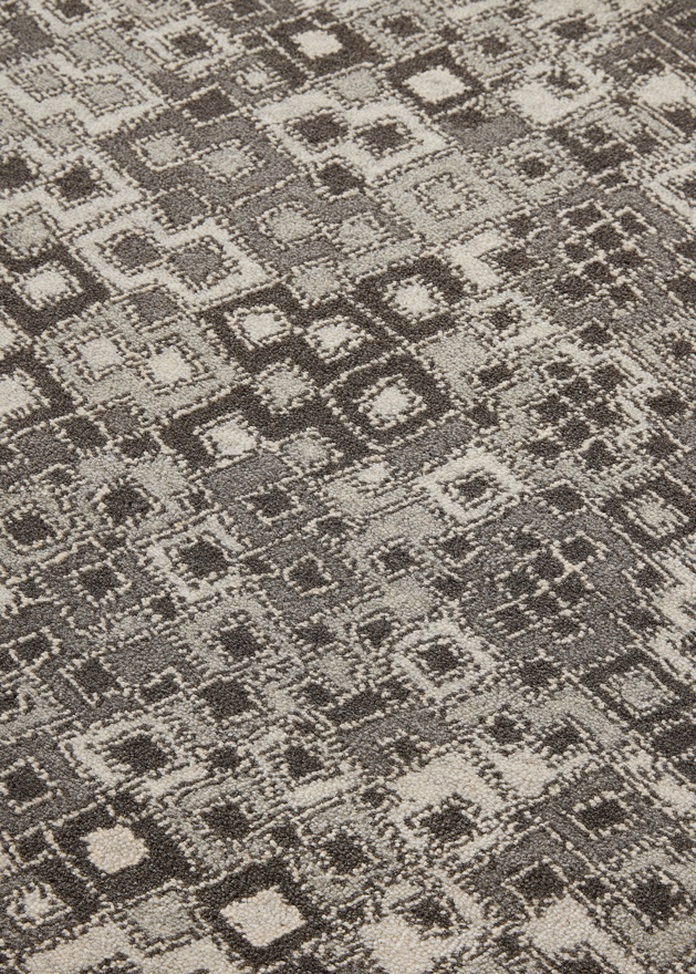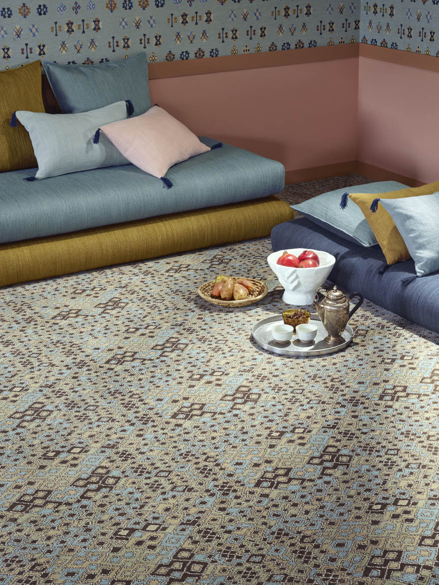 Adapté en moquette Axminster Fast-track, le dessin KARAKOUM révèle un motif vibrant s'inspirant des broderies en rafia du Kasaï, également appelées velours Kuba en raison des pompons de fils évoquant les poils coupés du velours. Décliné en 3 coloris, ce design est idéal pour les grandes largeurs.
