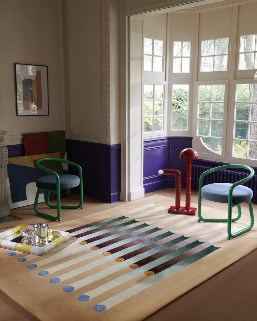 Composition contemporaine librement inspirée de l'esprit pop des années 60 et tuftée à la main en laine de Nouvelle-Zélande, IGGY hypnotise par ses dégradés vibrants et ses touches colorées en shiny nylon scintillant.