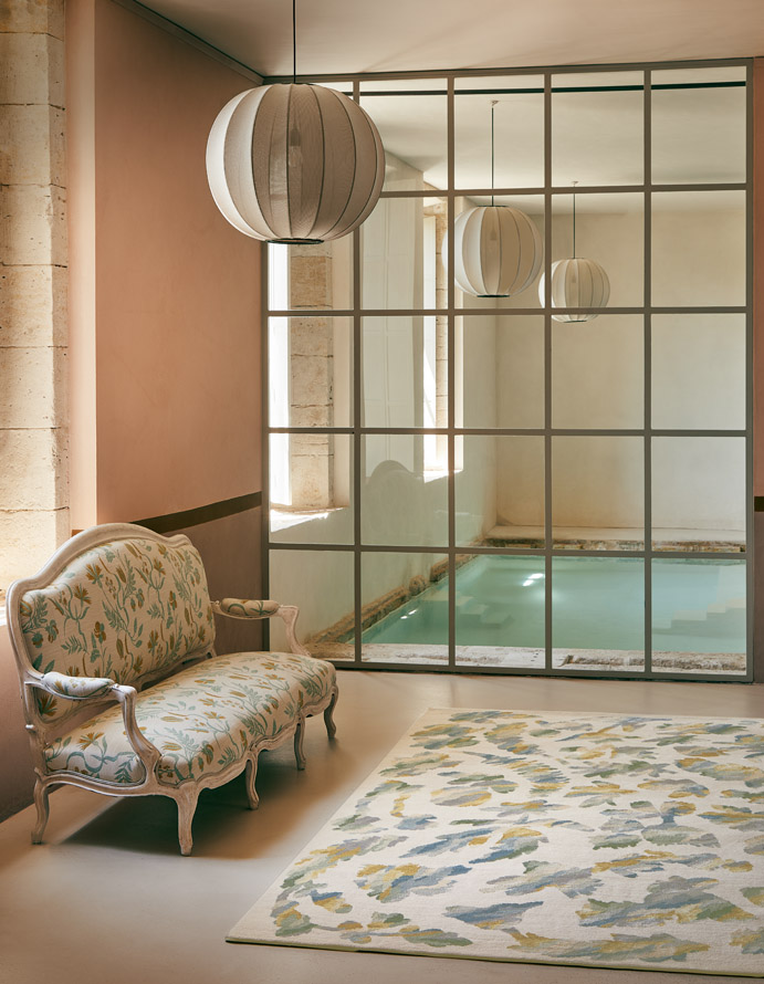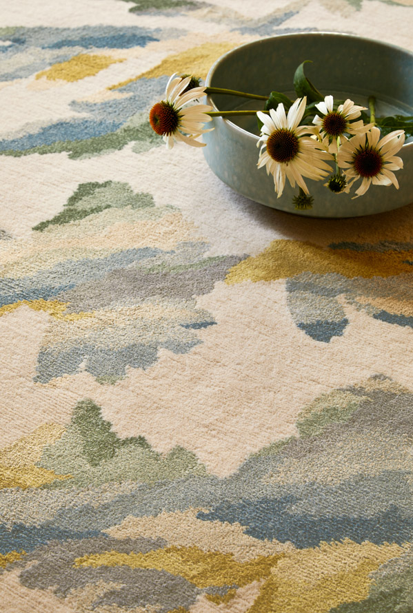 ABISKO est un tapis noué à la main au Népal, dont l’aspect délicat et artisanal révèle un sublime jeu de velours de laine et de soie. La subtile brillance des fleurs en soie se confond dans un dégradé de nuances douces et poétiques qui évoquent les peintures sur bois scandinaves.
