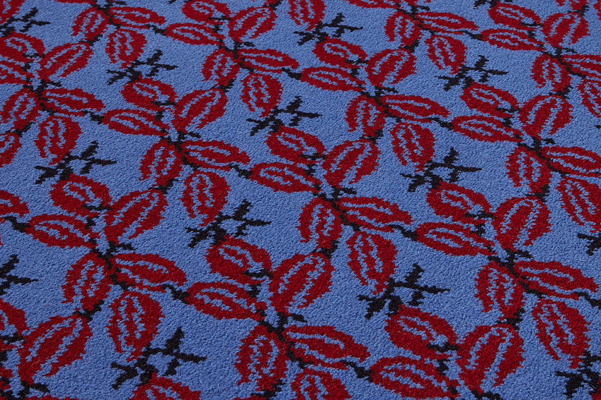 Multitude étoilée de fleurs alignées sur une moquette grande largeur en tissage Axminster.