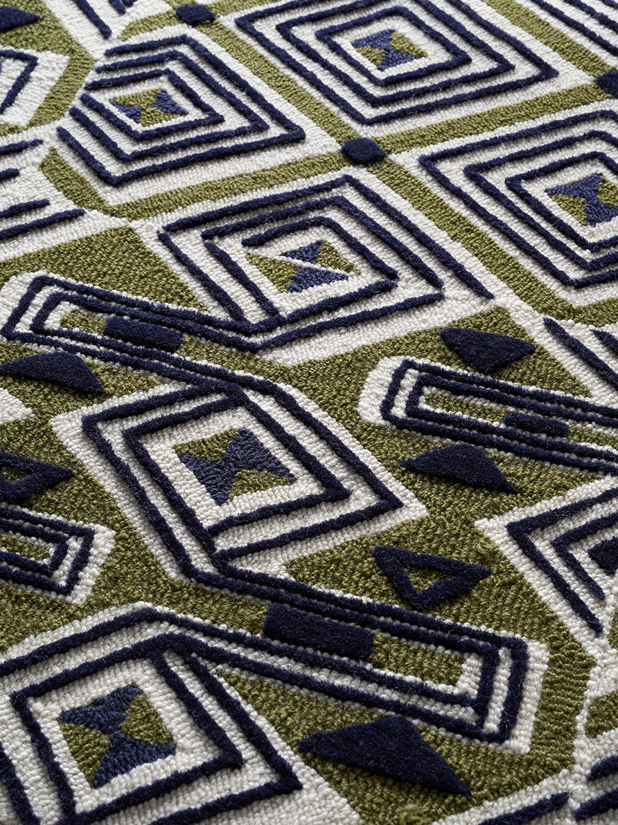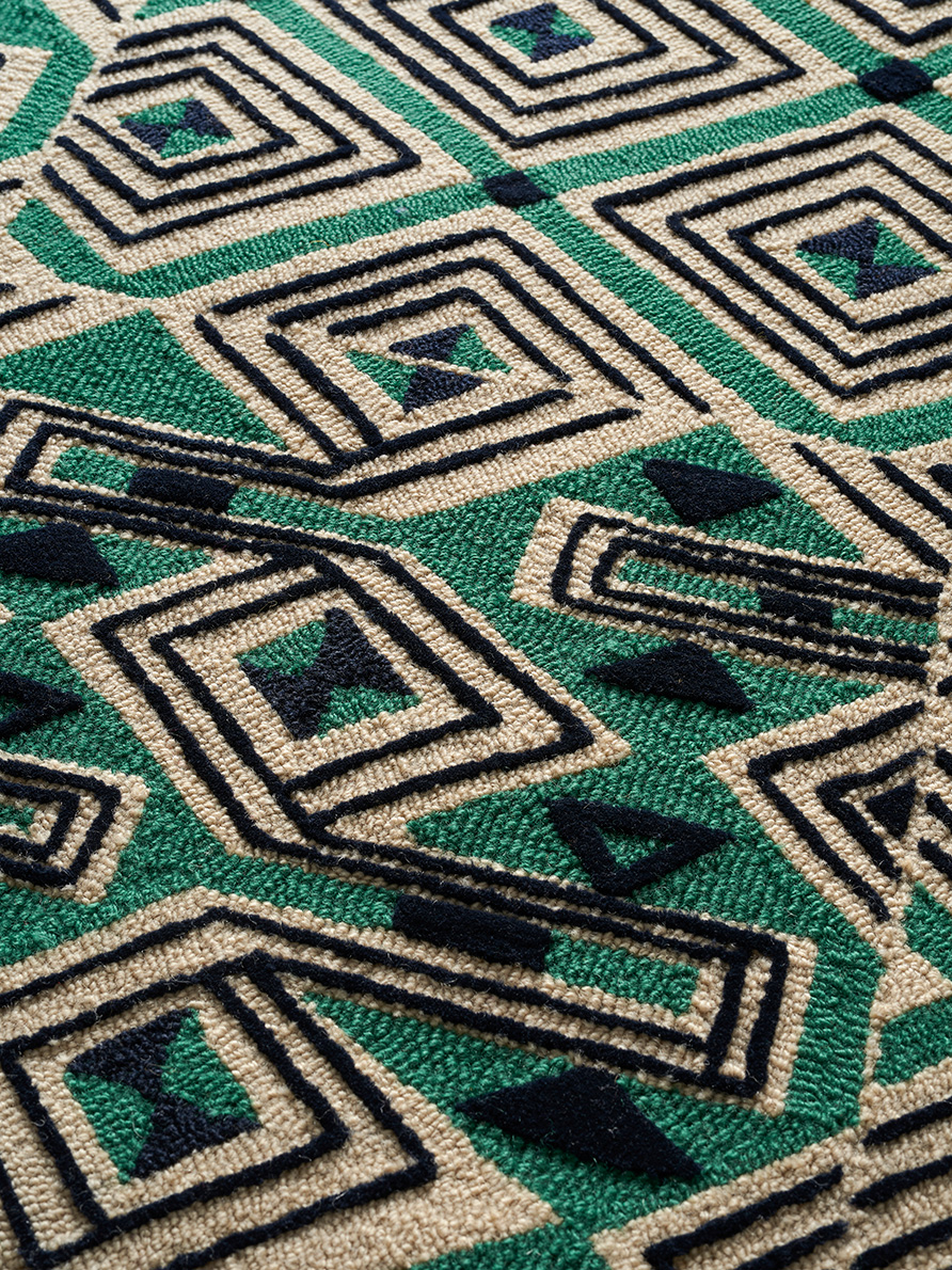 Il s'agit de la toute première toile de Tours éditée par Le Manach en 1928. D'influence africaine, elle démontre l'attraction que ce continent exerce sur les européens de l'époque. Tuftée-main, en boucles de laine de Nouvelle-Zélande, réhaussées d'un velours coupé de laine.
