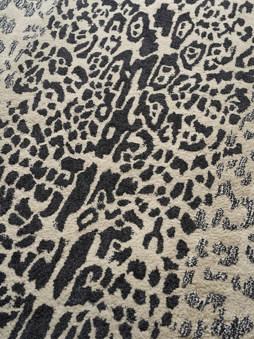 Tufté à la main en velours de laine de Nouvelle-Zélande et de soie, LEOPARD témoigne de la permanence du goût pour les peaux de bêtes dans la décoration.