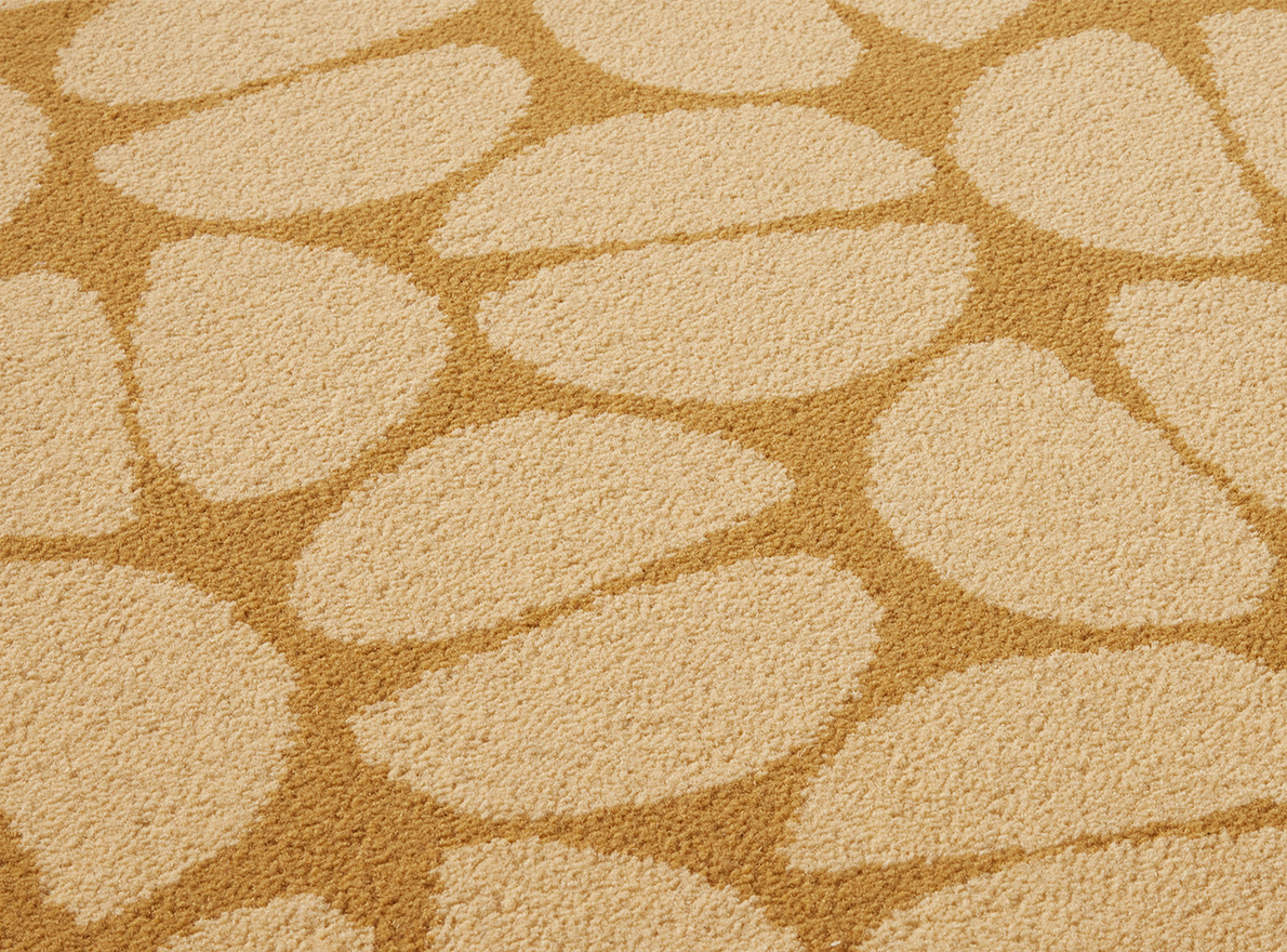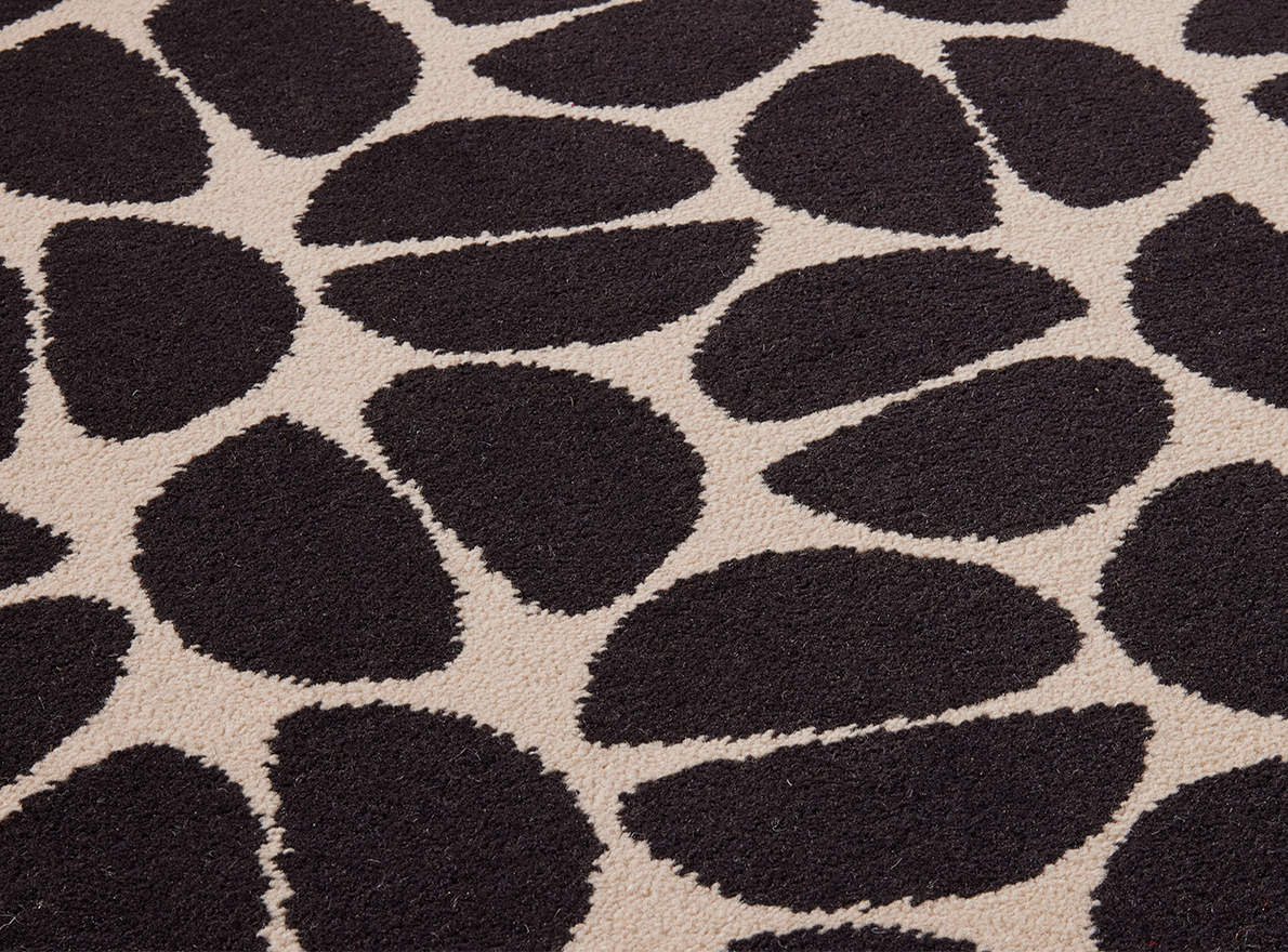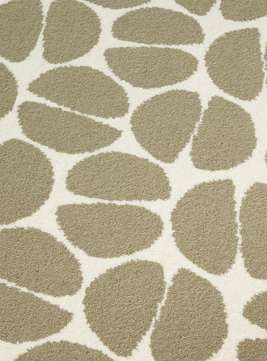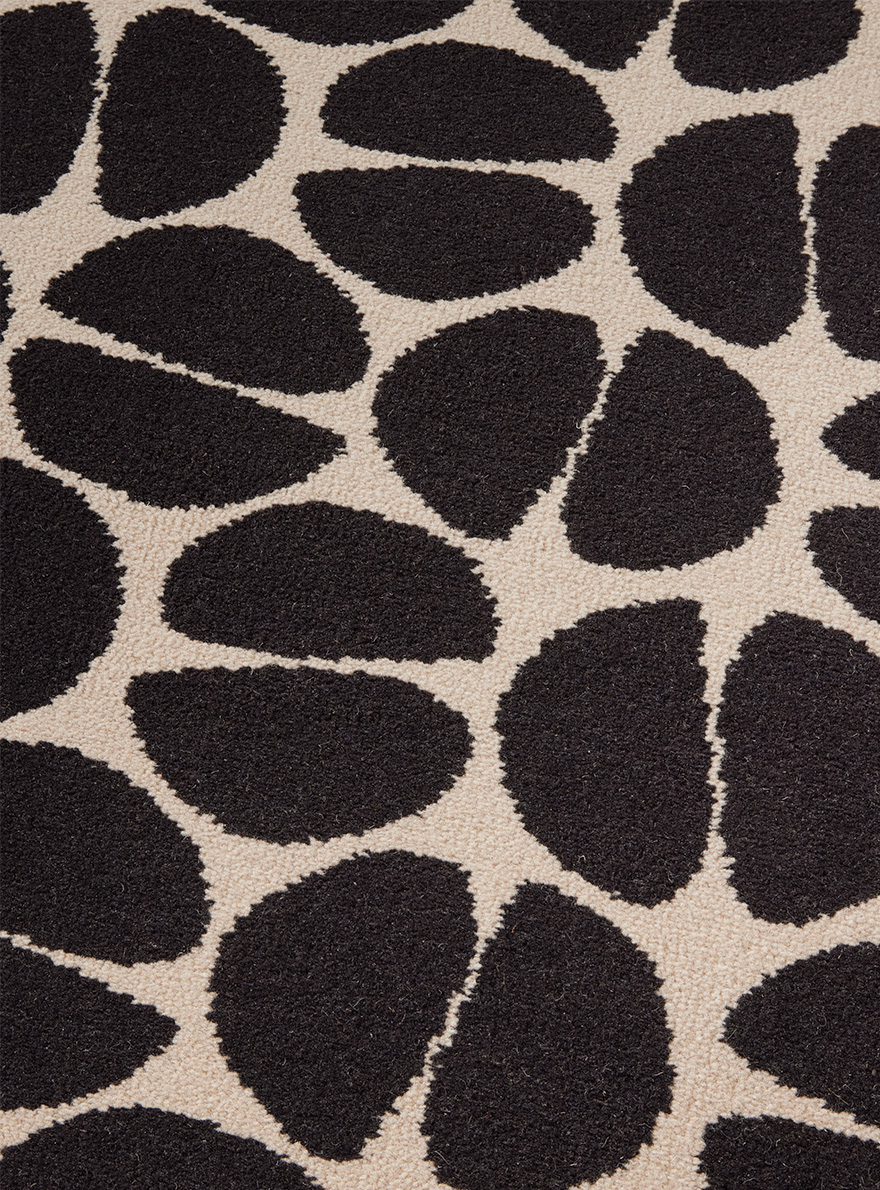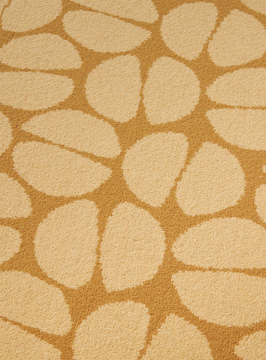 Déclinaison graphique de ce fruit à coque pour une décoration contemporaine à la limite de l'abstraction, ici en tissage Axminster.