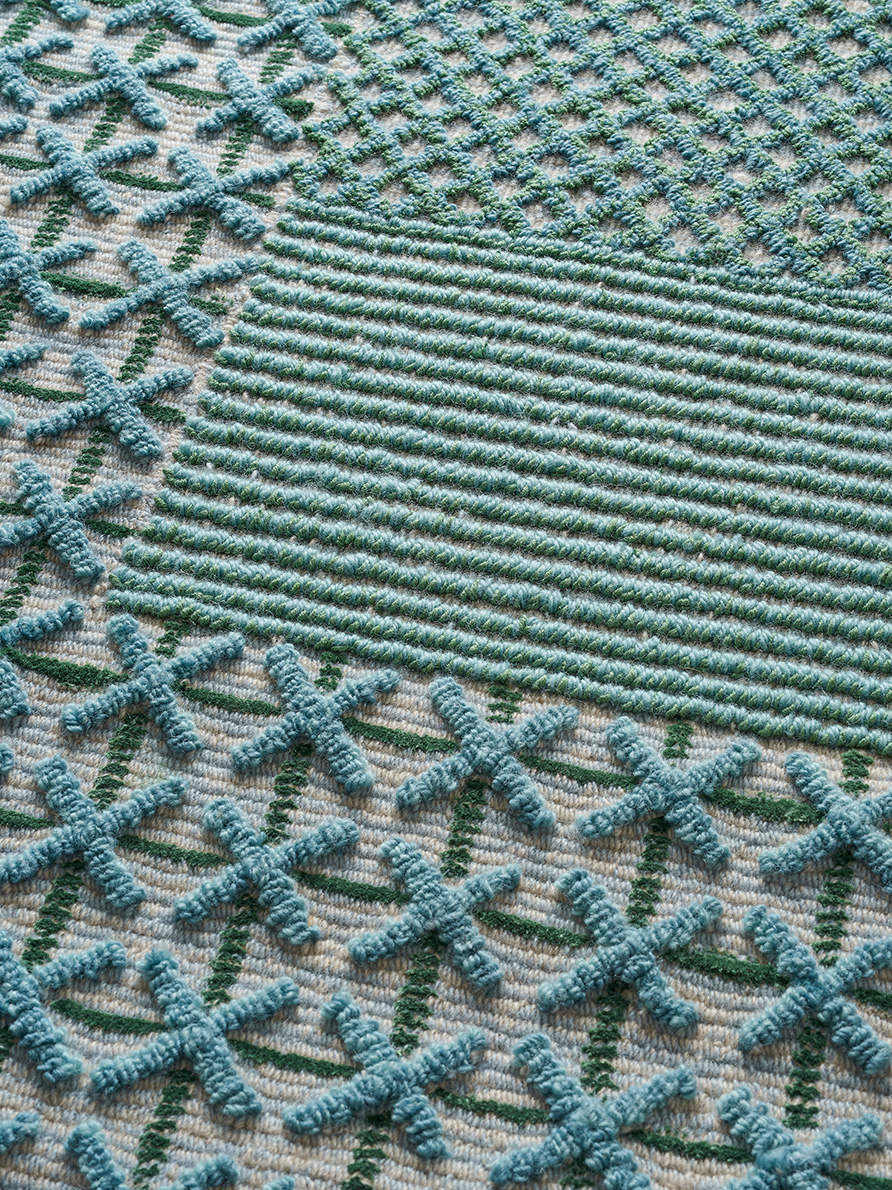 IMAGINE incarne l’esprit libre des années 1970 en nous transportant dans un monde riche en textures et en effets de matière. Inspirée du mouvement support-surface, elle donne autant d’importance aux matières qu’aux couleurs, à l’acte créateur qu’à l’oeuvre finale. Composée de dessins non figuratifs, elle laisse la part belle aux motifs influencés par l’expressionisme abstrait.