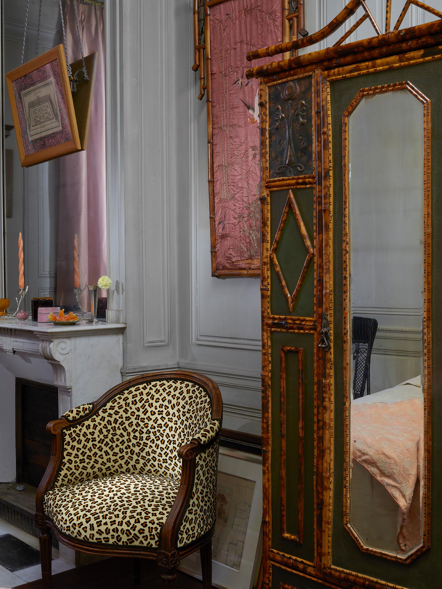 Réinterprétation d’un document d’archive issu des collections du Musée de la Toile de Jouy, ce semis léopard provient d’un sergé de coton imprimé à la planche de bois, après 1806 par la Manufacture Royale d'Oberkampf, à Jouy-en-Josas. Il fut utilisé en 1816 dans la salle de billard du château du Montcel habité par les descendants du célèbre manufacturier. Ce charmant dessin, dont certaines parties manquaient, a été complété, légèrement agrandi, et reprend vie aujourd’hui dans une qualité de velours ciselé, tissé sur un métier à cartons perforés du XIXe siècle. La densité de ses boucles et des poils de coton, ainsi que ses teintes chaleureuses et intemporelles, en font un tissu idéal.