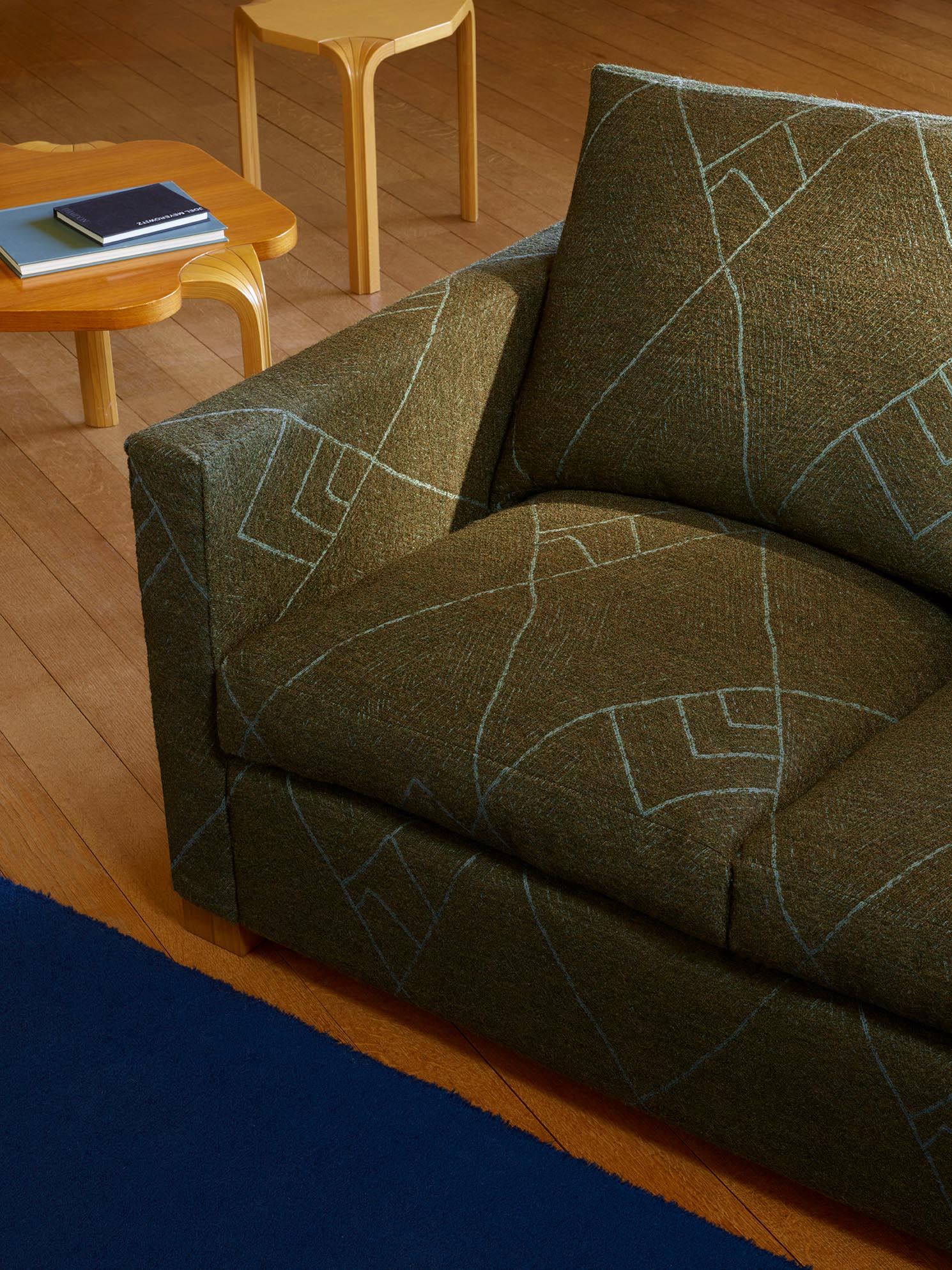 Très beau jacquard effet bouclette au motif géométrique mélangeant laine, mohair et alpaga, tissé dans les ateliers Pierre Frey du nord de la France.