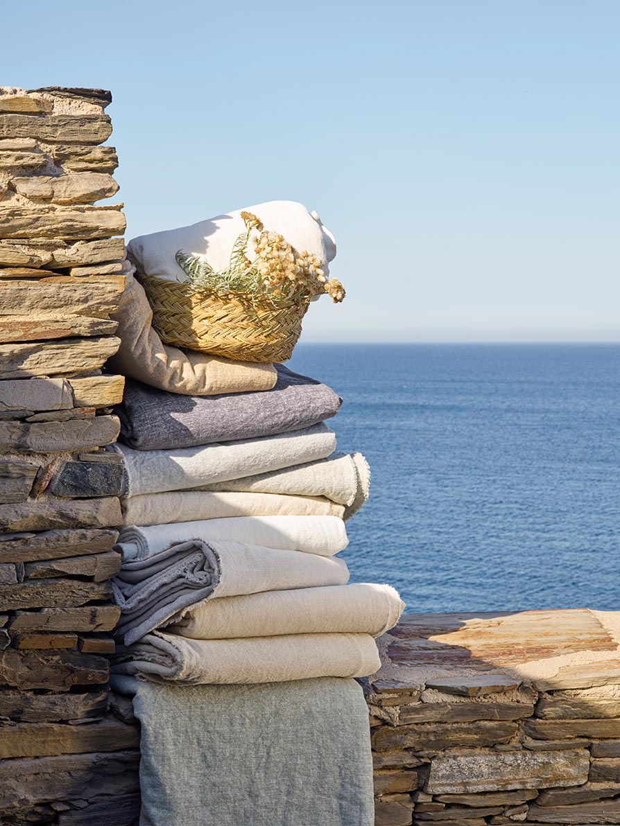 Lin et coton composent naturellement cette étoffe tramée en fil chenille. D’une tendre douceur, elle se déploie en grande largeur.