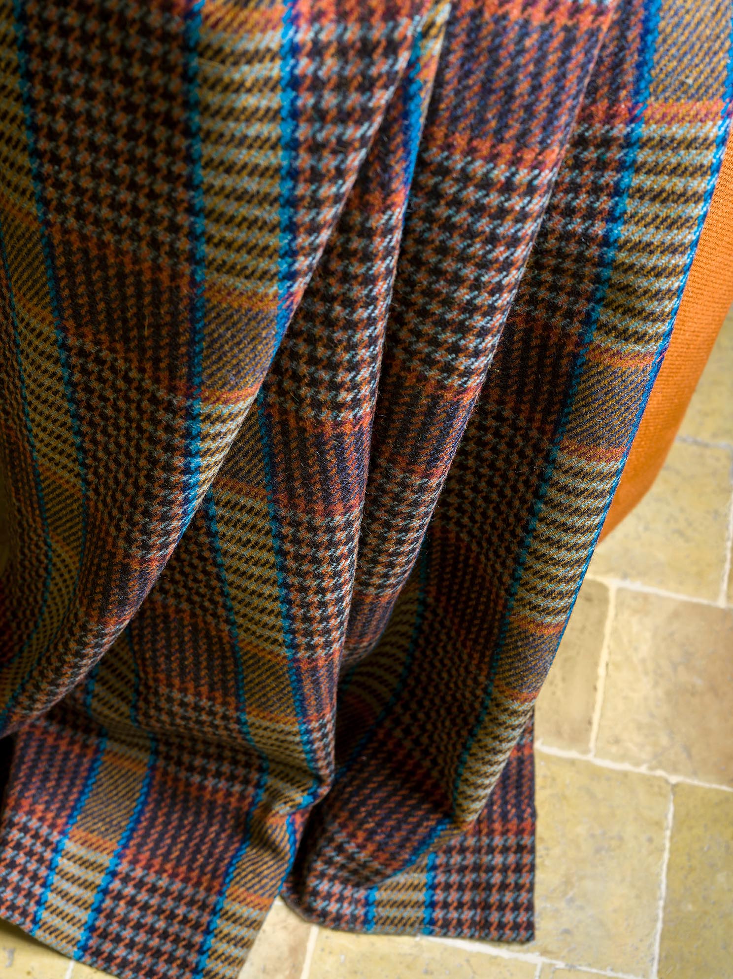 Ce motif Prince de Galles, en pure laine vierge, est tissé de manière traditionnelle à Donegal en Irlande. La disposition complexe des fils de chaîne par rapport à ceux de trame, ainsi que l'originalité des coloris Sequana, le rendent aussi authentique qu'extravagant.