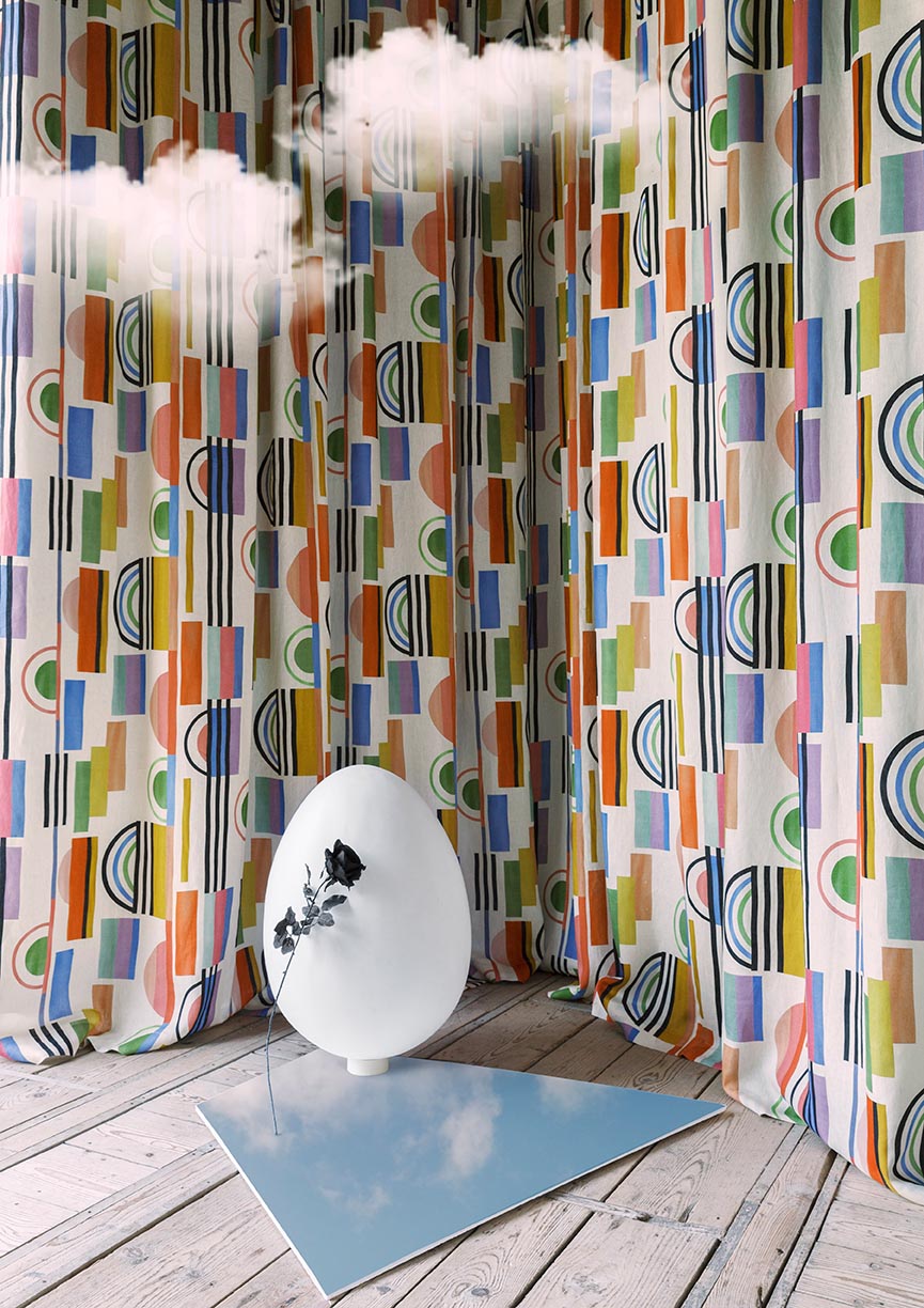 Ode à la création, FREDA est un imprimé abstrait tout en couleur, lumineux et graphique. Sa palette et l’ampleur de sa composition rappellent avec modernité l’orphisme, mouvement artistique des années 1910.