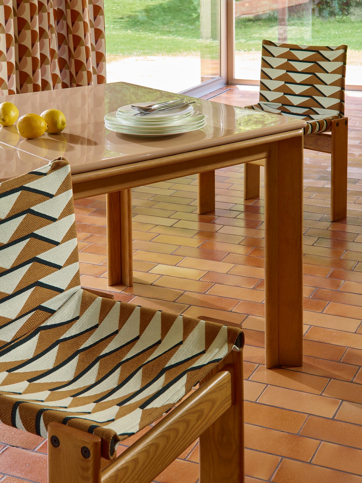 Intemporel, ce jacquard géométrique est une réinterprétation d’un dessin moderniste de la créatrice textile Elise Djo-Bourgeois imaginé en 1930 et pré...