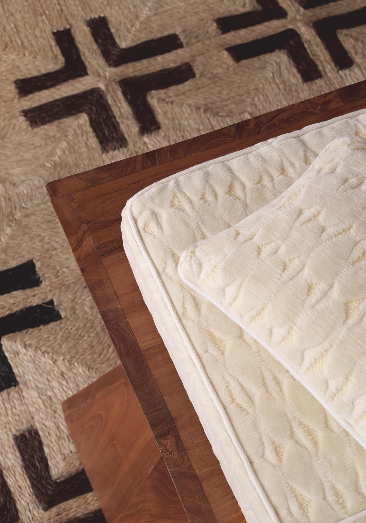 Charmant dessin irrégulier à la géométrie dansante, KAYAR alterne des zones en velours sur fond de coton mat, délicatement ombrées par une magnifique ...
