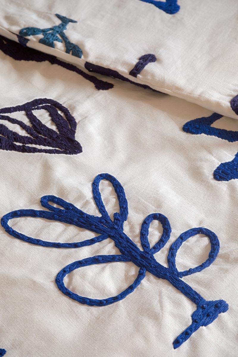 Dans un camaïeu de bleu, sophistication et raffinement des points de broderies pour ces magnifiques fleurs entièrement brodées à la main.