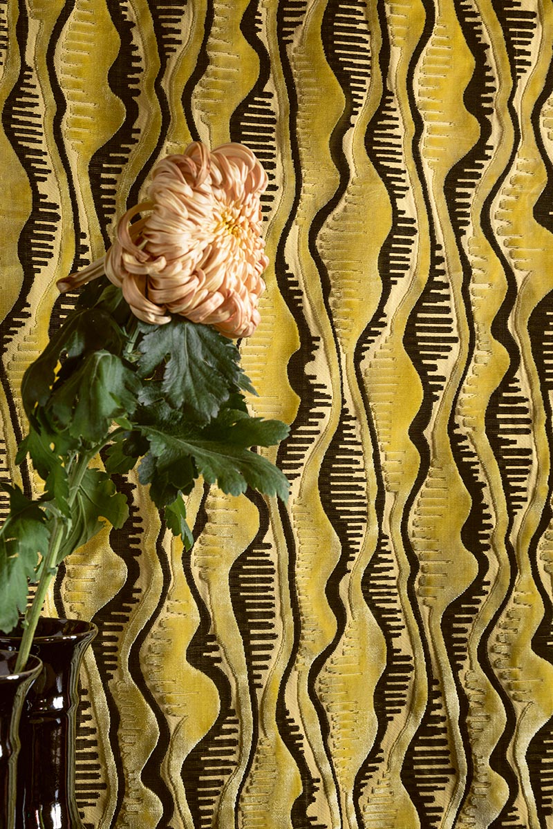Harmonie, fluidité et vibrations colorées d'une très belle rayure en velours ciselé.